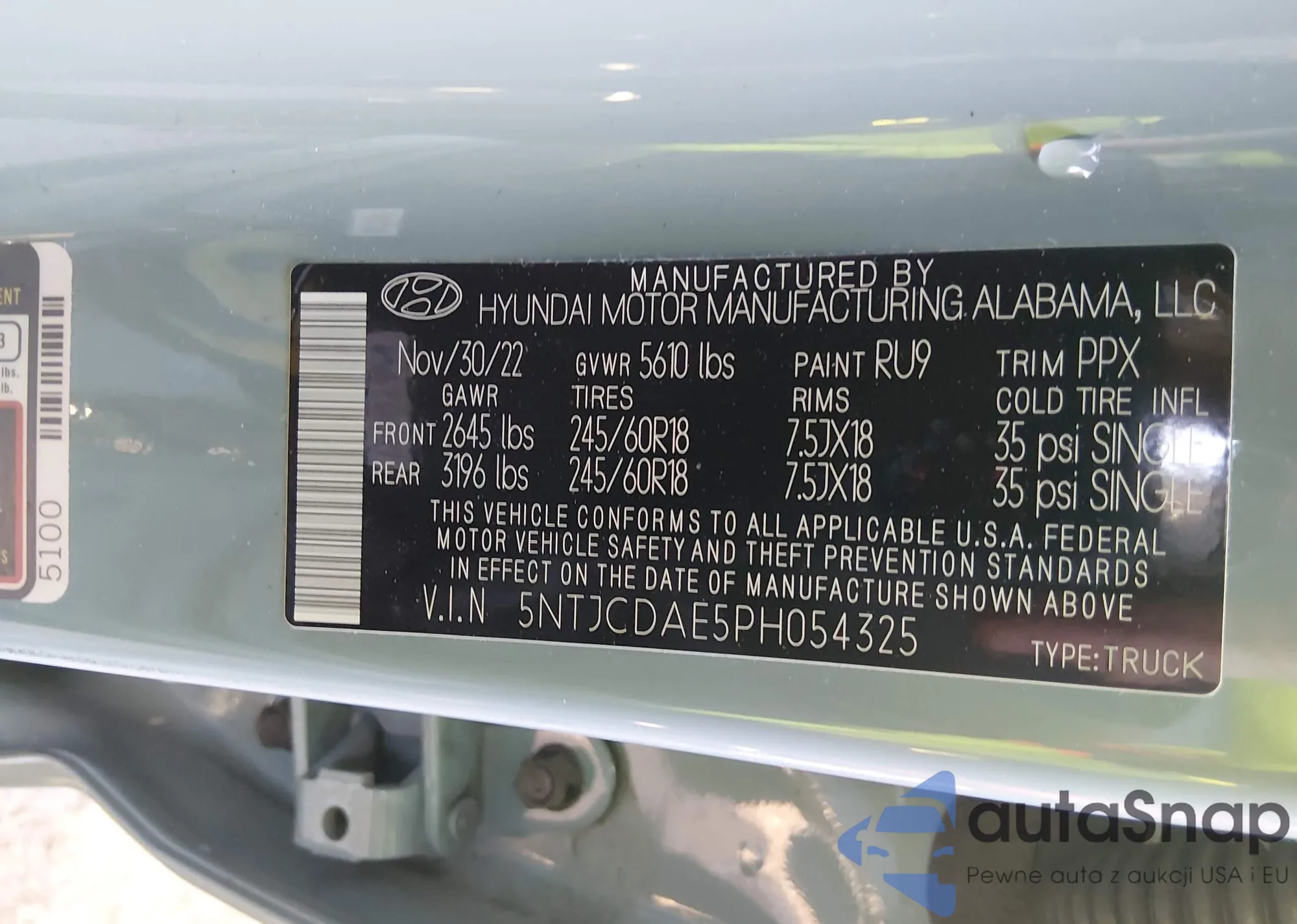 Samochód Hyundai Santa Cruz 2023 (VIN 5NTJCDAE5PH054325) nie był wcześniej licytowany. Dokumenty są czyste, przebieg odpowiada lub jest niższy niż średnia rynku. Sprzedaje go firma ubezpieczeniowa – polecamy zakup. Dostawa do portu zajmie ok. 6–8 tygodni.