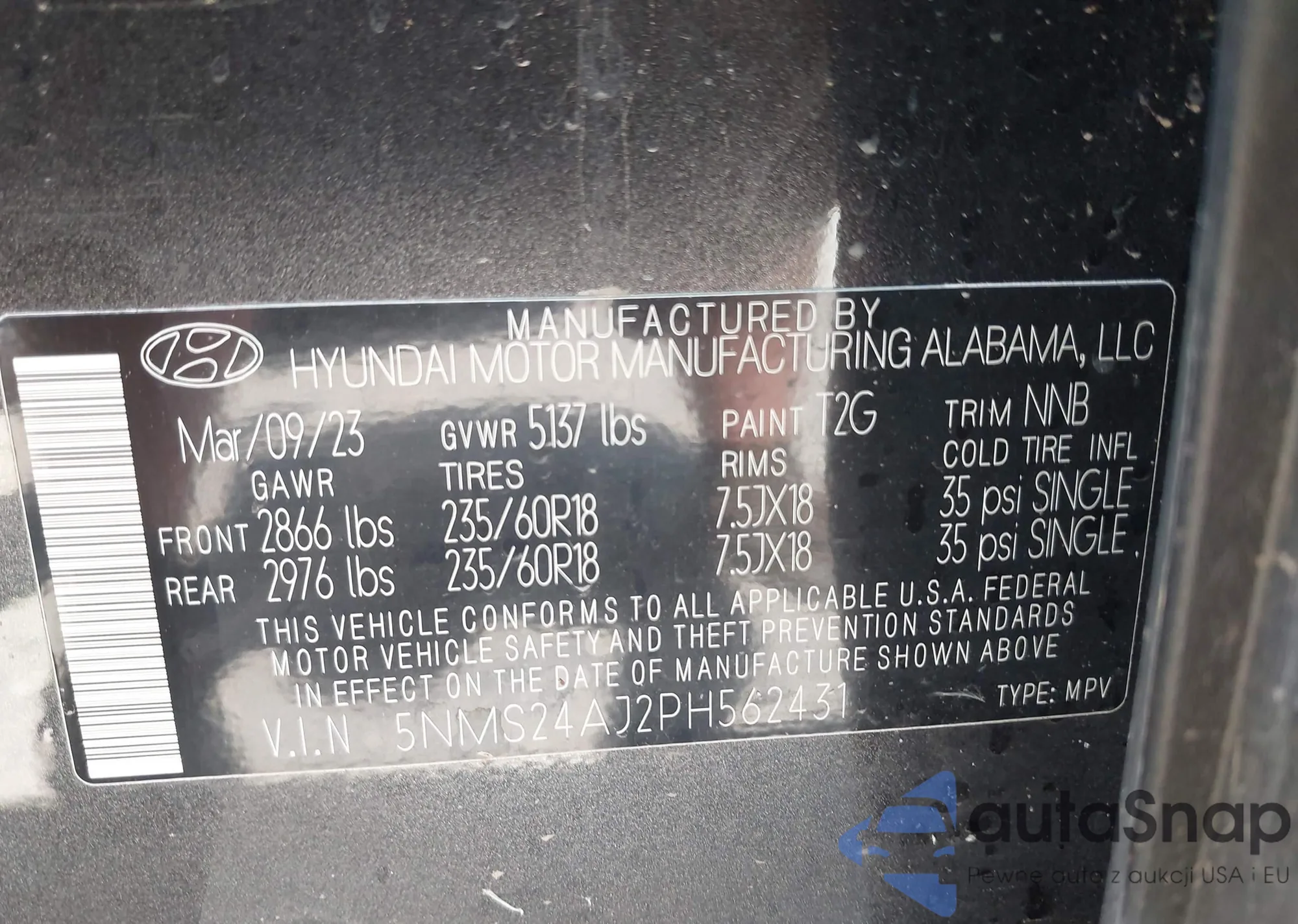 • VIN: 5NMS24AJ2PH562431