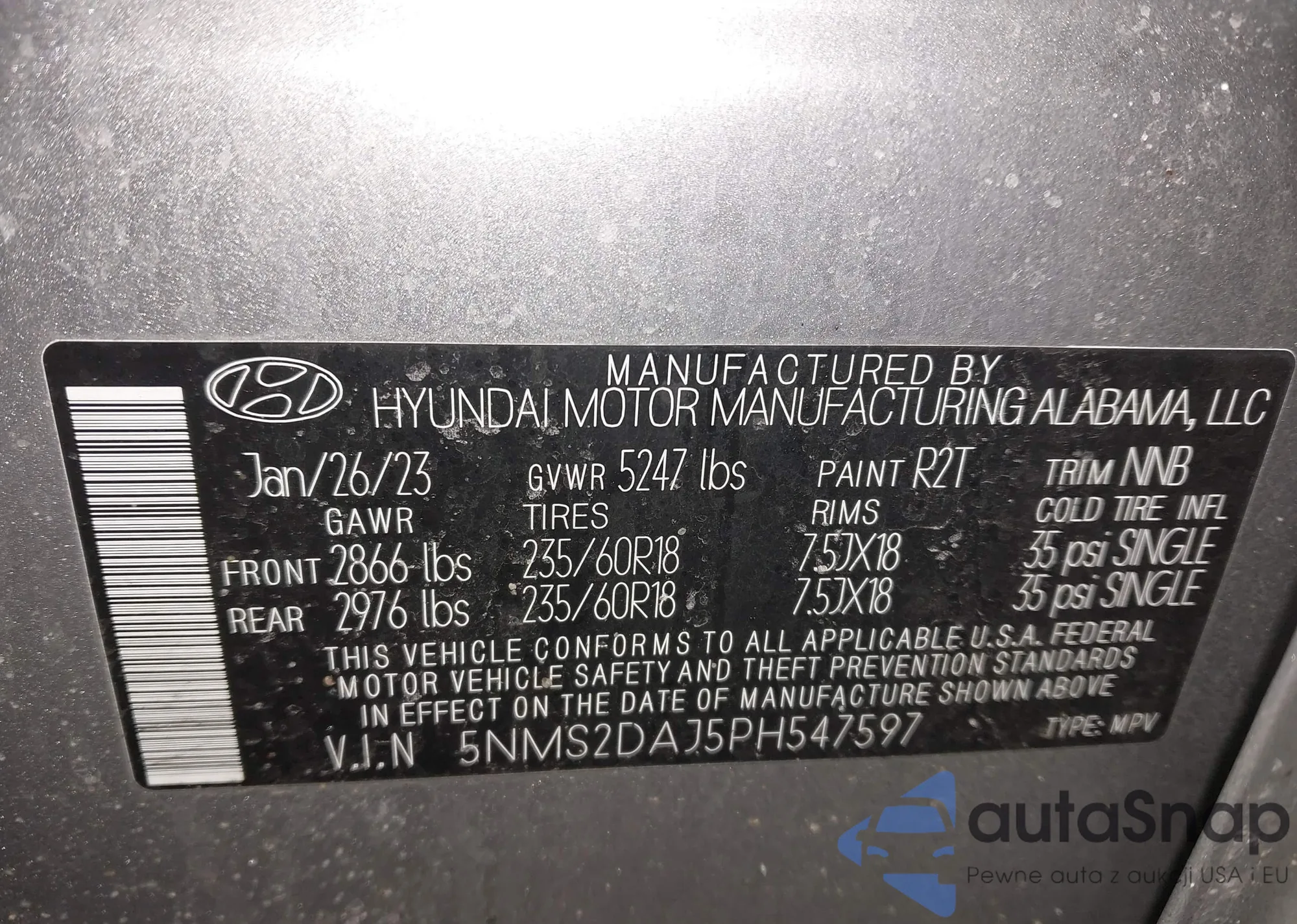 VIN: 5NMS2DAJ5PH547597