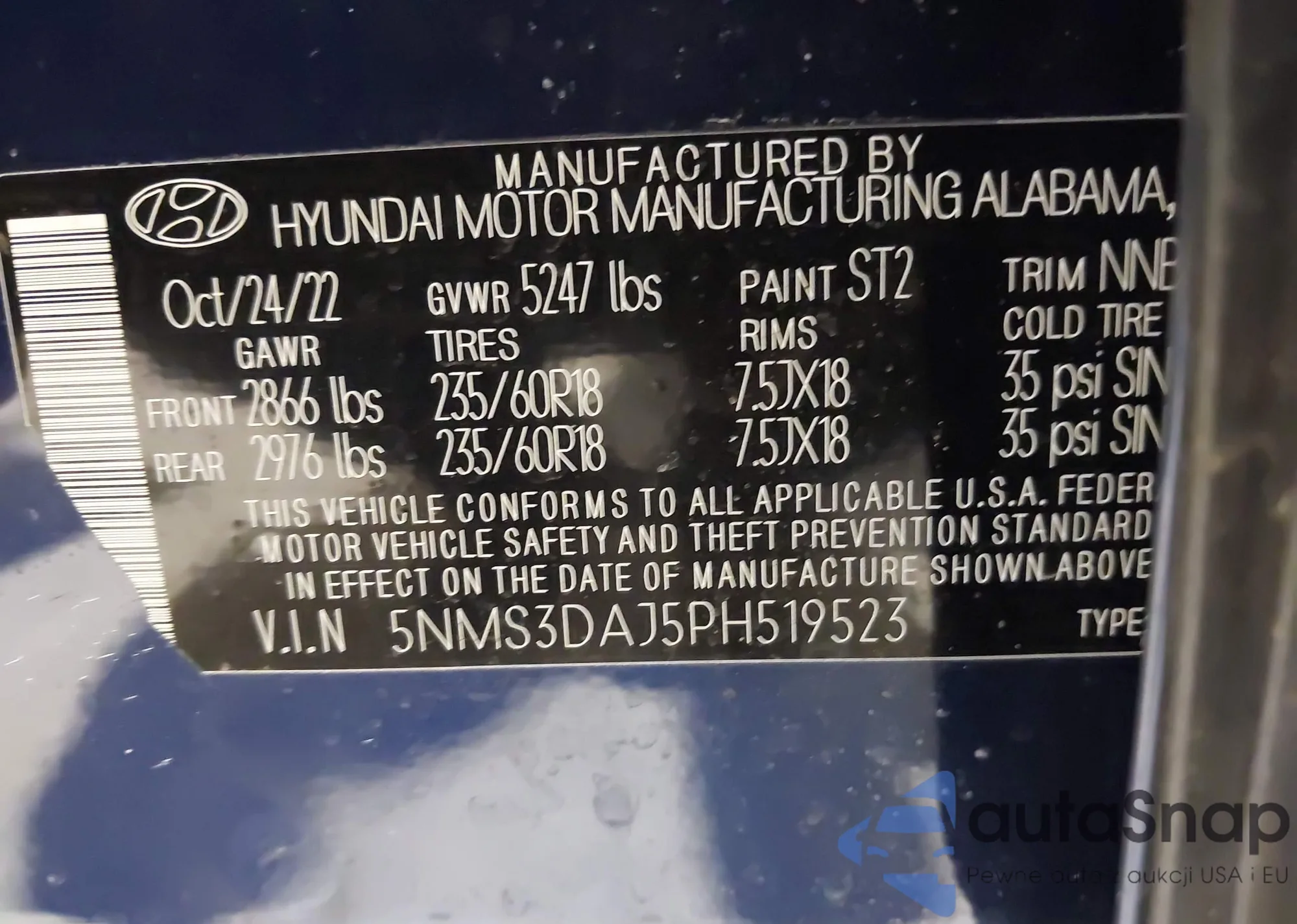 • VIN: 5NMS3DAJ5PH519523