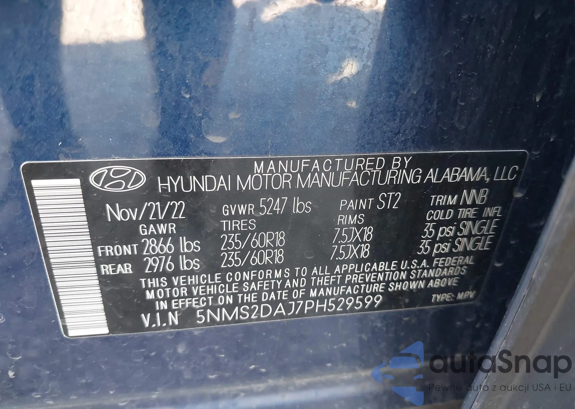 VIN: 5NMS2DAJ7PH529599