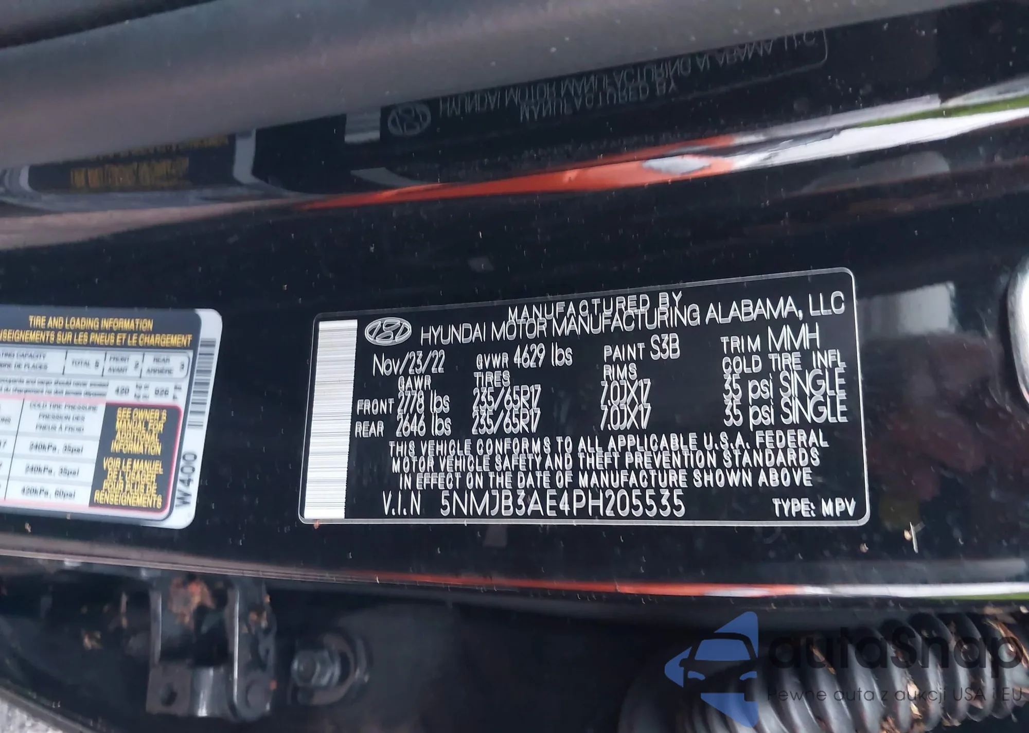 VIN: 5NMJB3AE4PH205535