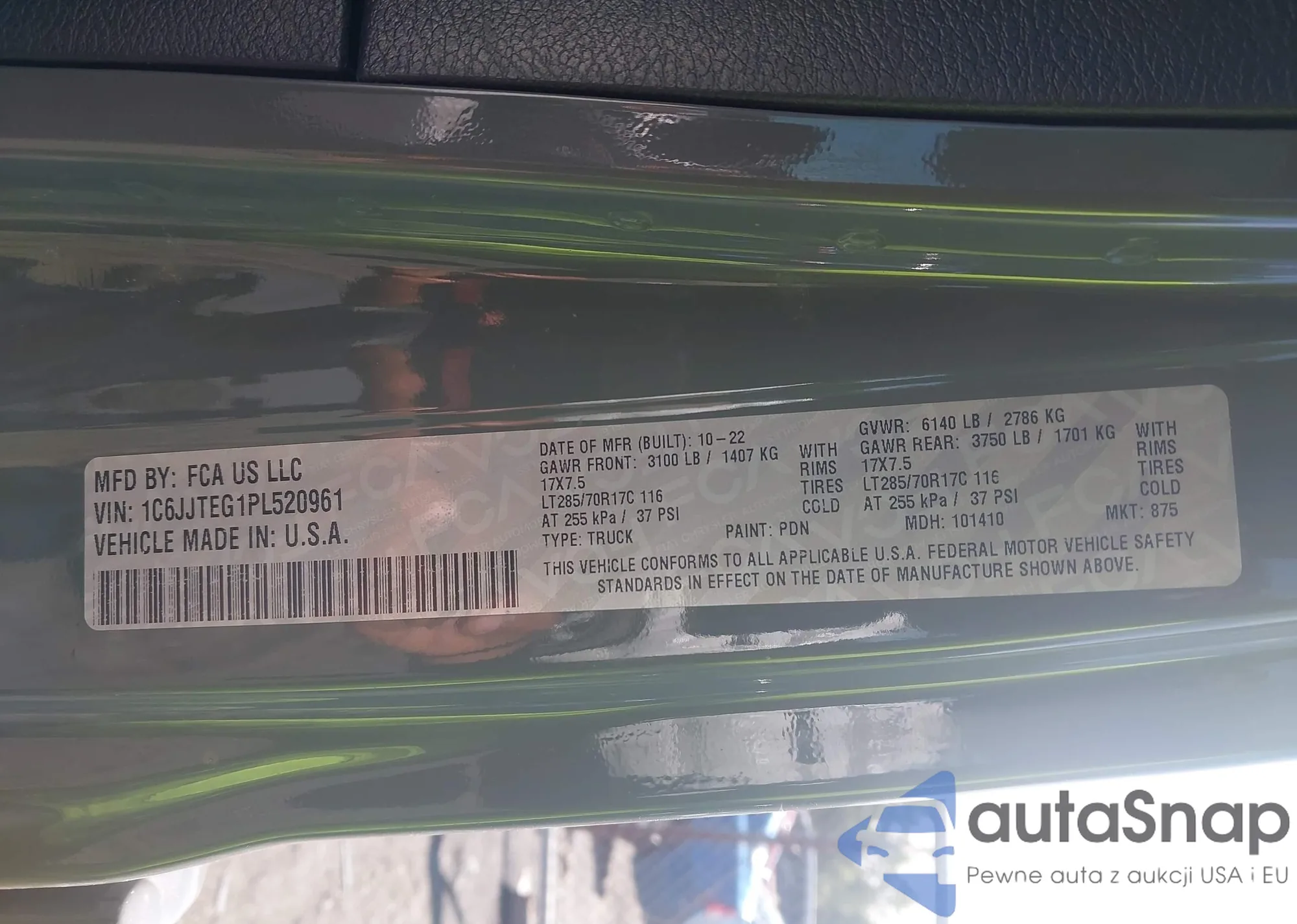 • VIN: 1C6JJTEG1PL520961