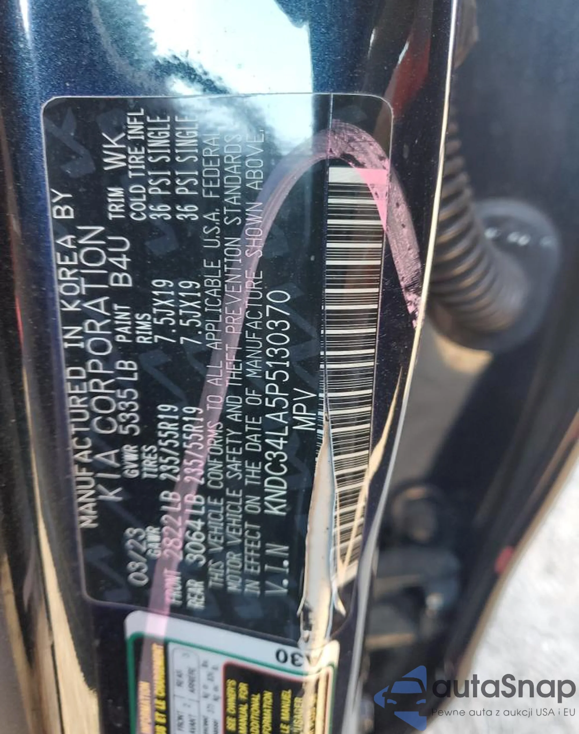 • VIN: KNDC34LA5P5130370