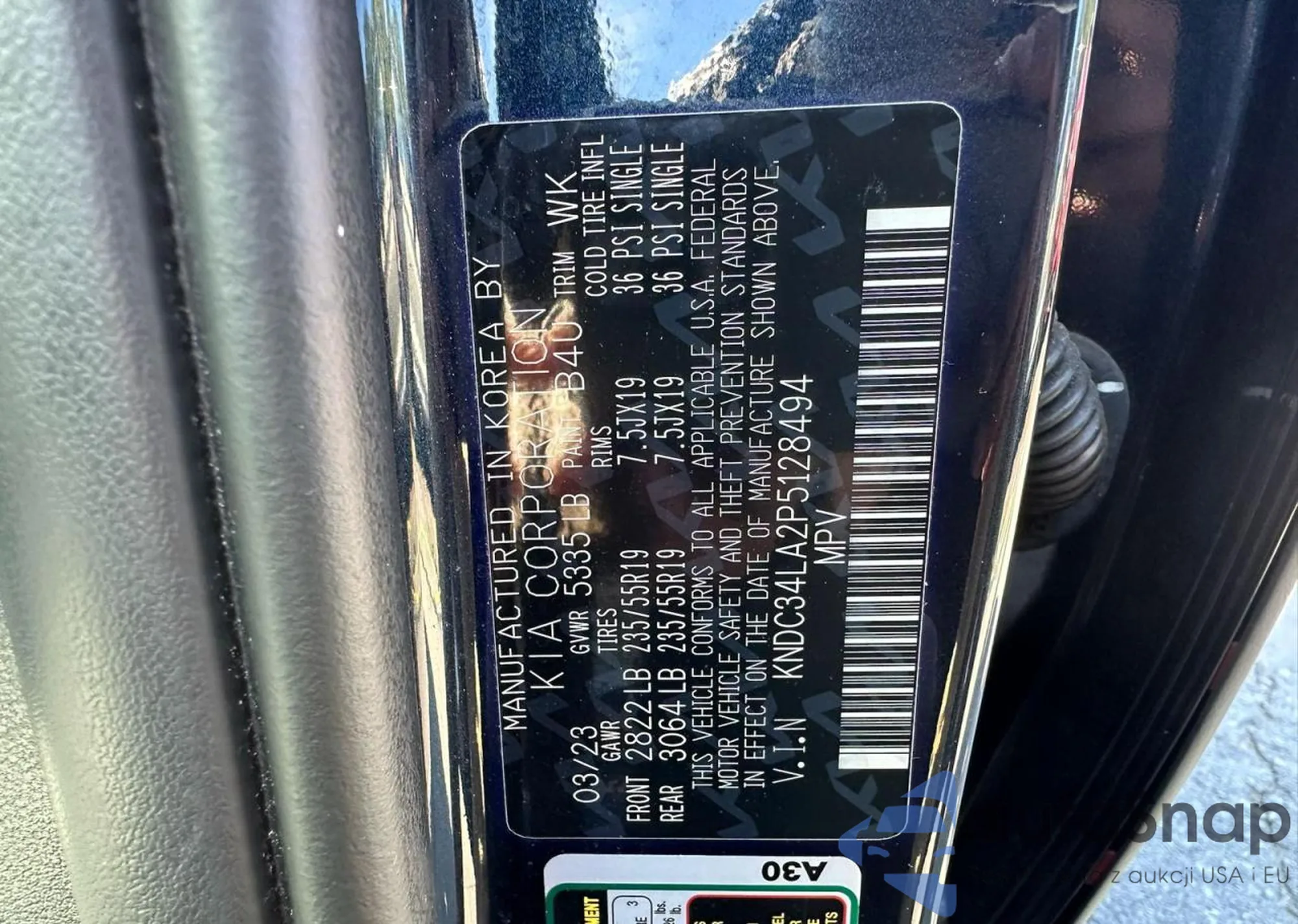 Samochód Kia EV6 2023 (VIN KNDC34LA2P5128494) ma dokumenty uniemożliwiające rejestrację. Mogą pojawić się trudności przy eksporcie i rejestracji. Skontaktuj się z ekspertami AutaSnap w celu znalezienia alternatywy.