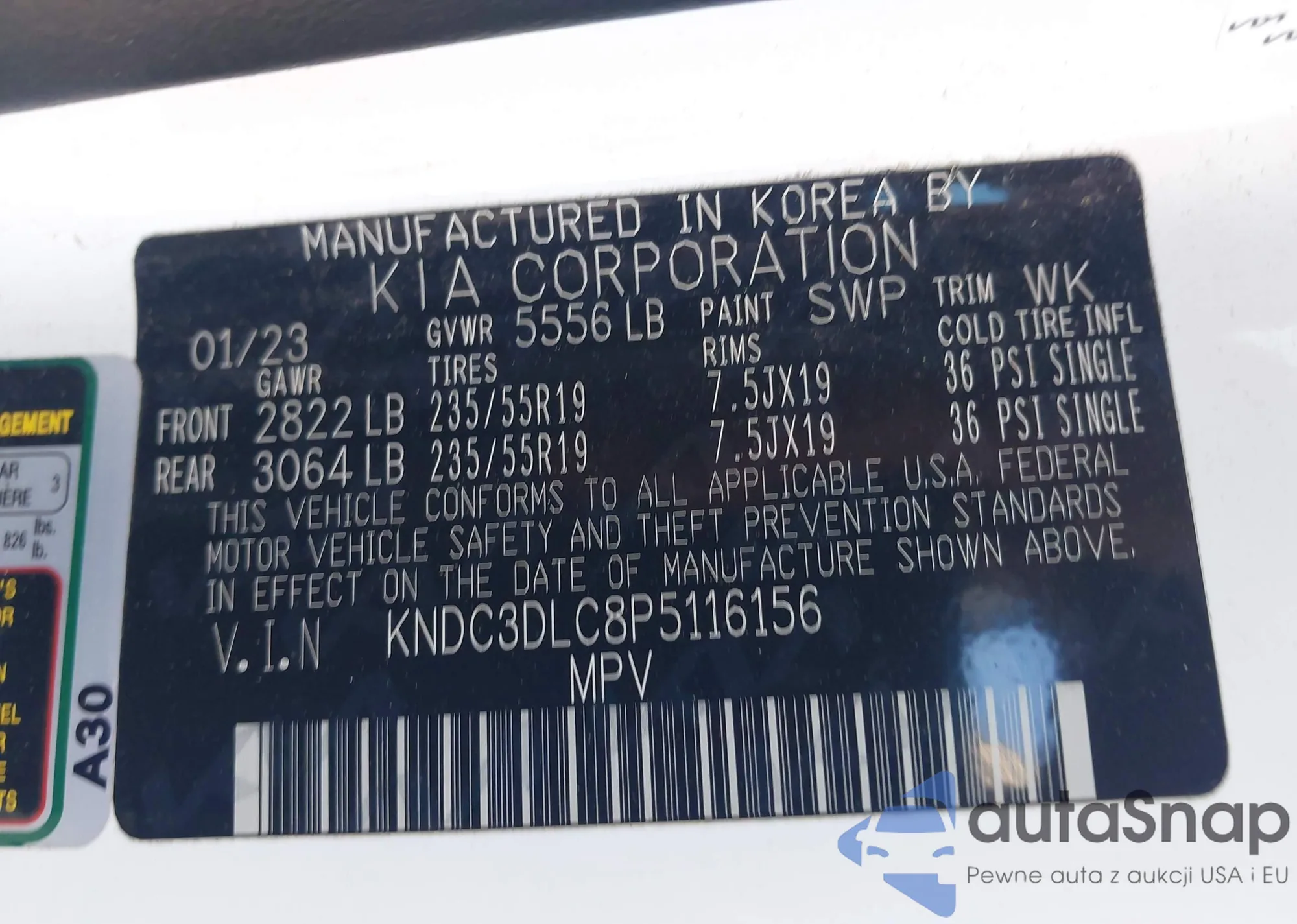 Samochód Kia EV6 2023 (VIN KNDC3DLC8P5116156) nie był wcześniej licytowany. Dokumenty są czyste, przebieg odpowiada lub jest niższy niż średnia rynku. Sprzedaje go firma ubezpieczeniowa – polecamy zakup. Dostawa do portu zajmie ok. 6–8 tygodni.