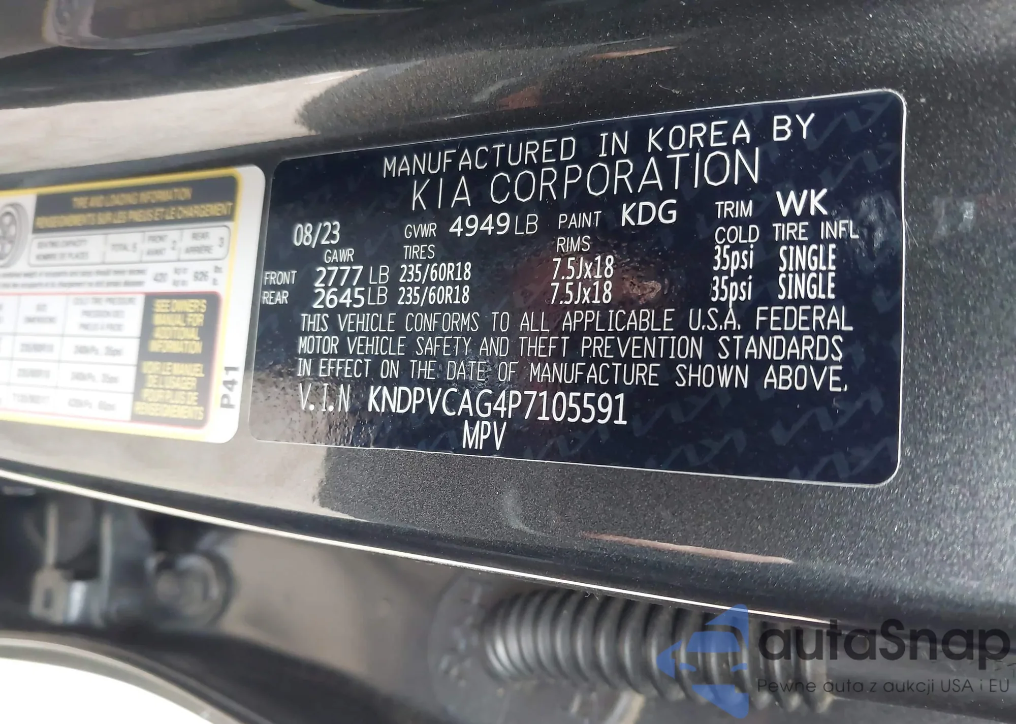 Samochód Kia Sportage 2023 (VIN KNDPVCAG4P7105591) nie był wcześniej licytowany. Dokumenty są czyste, przebieg odpowiada lub jest niższy niż średnia rynku. Sprzedaje go firma ubezpieczeniowa – polecamy zakup. Dostawa do portu zajmie ok. 6–8 tygodni.