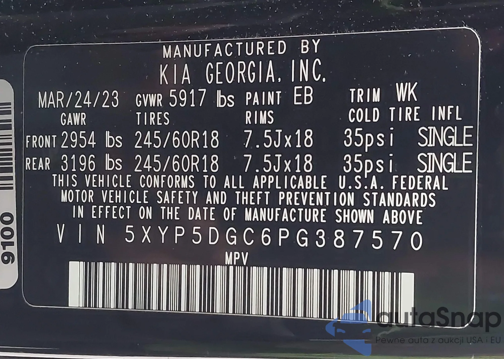 • VIN: 5XYP5DGC6PG387570