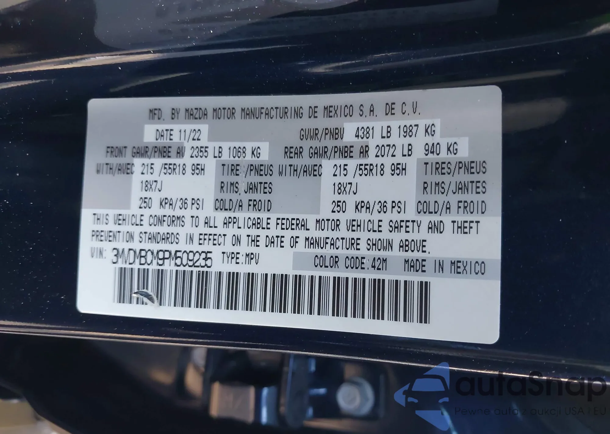 VIN: 3MVDMBCM9PM509235