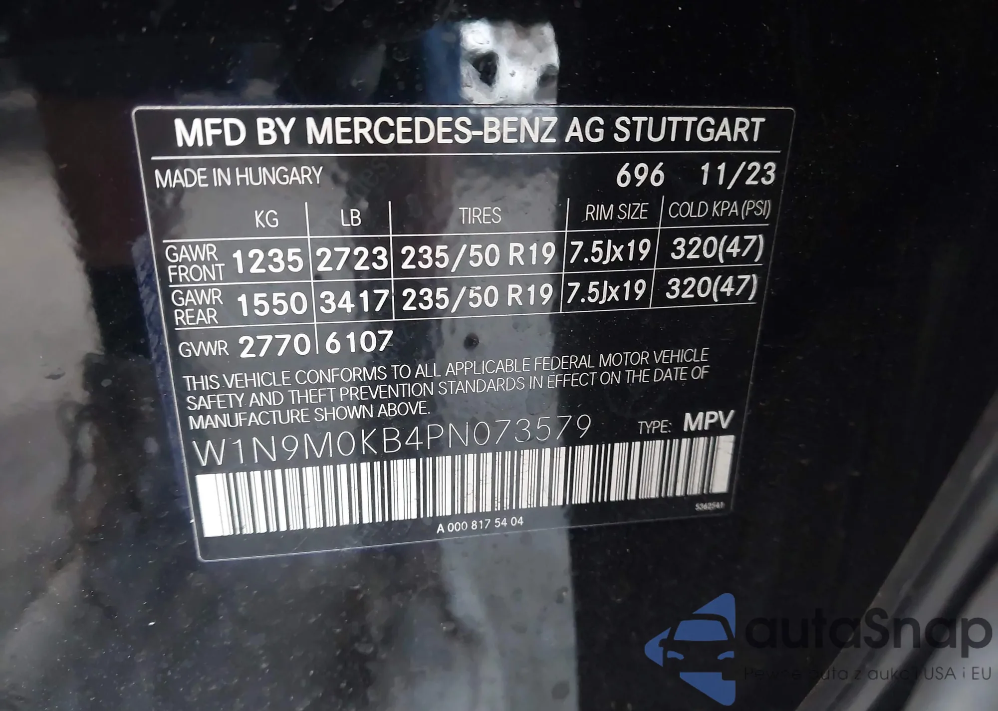 VIN: W1N9M0KB4PN073579