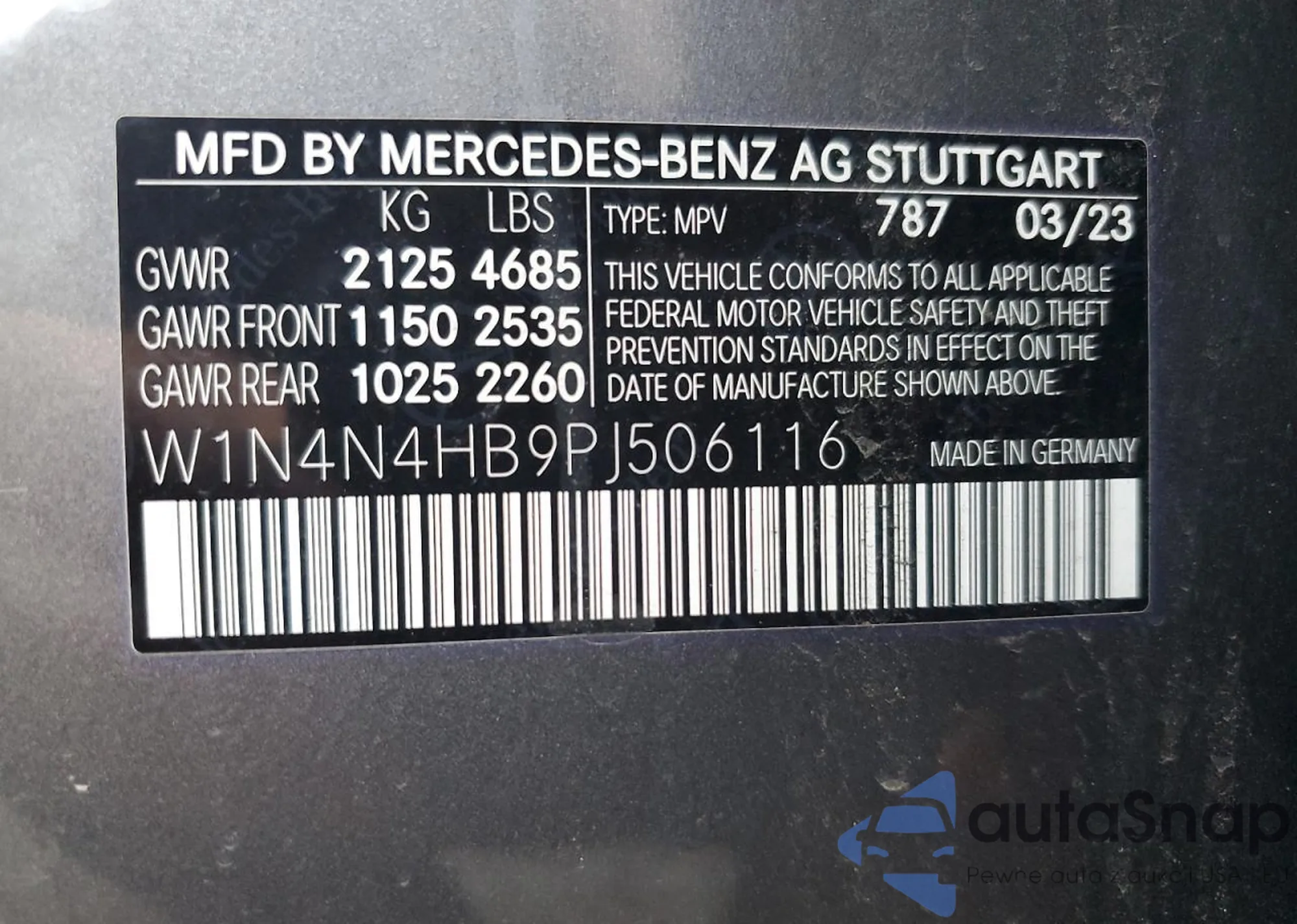 VIN: W1N4N4HB9PJ506116