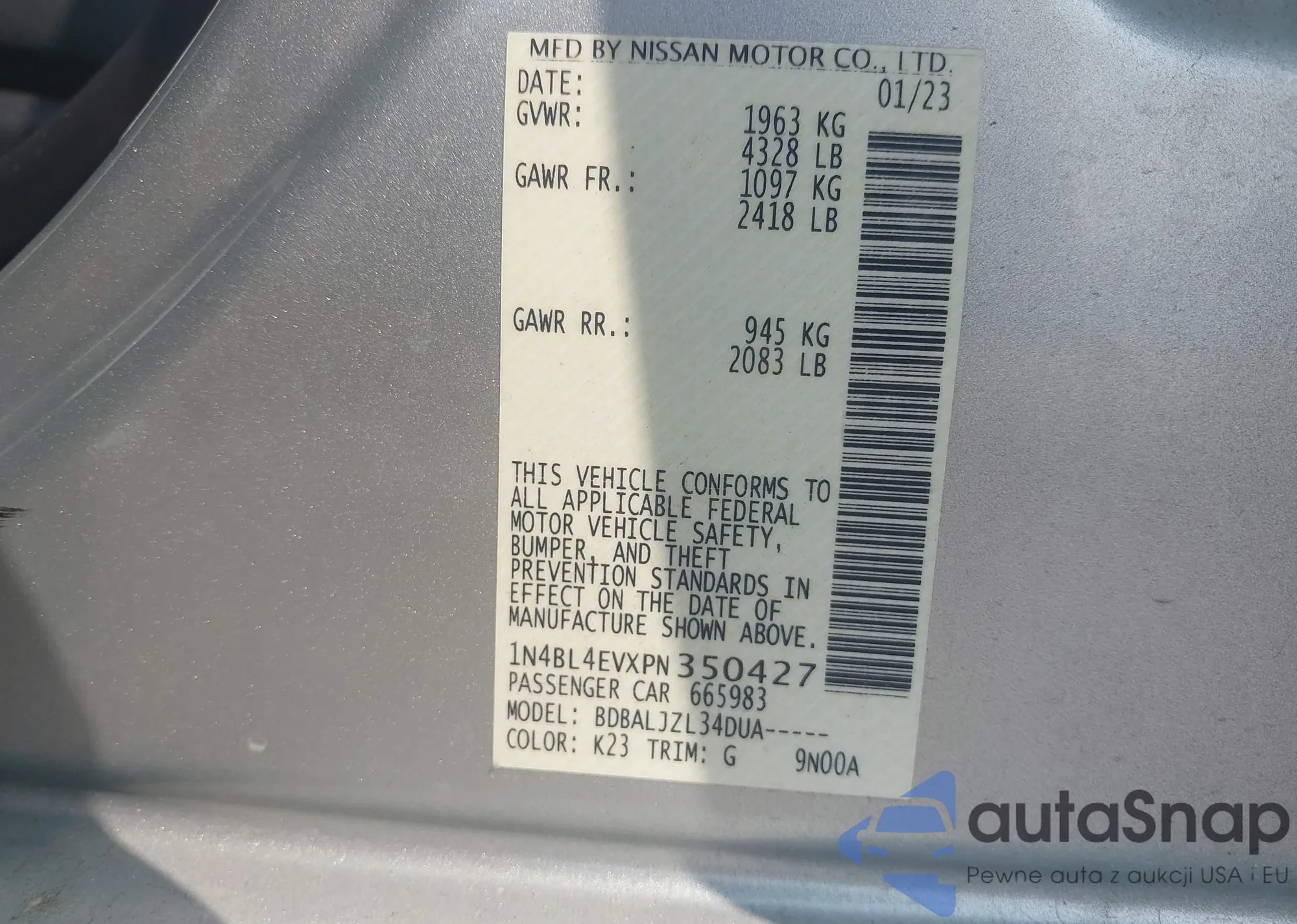 VIN: 1N4BL4EVXPN350427