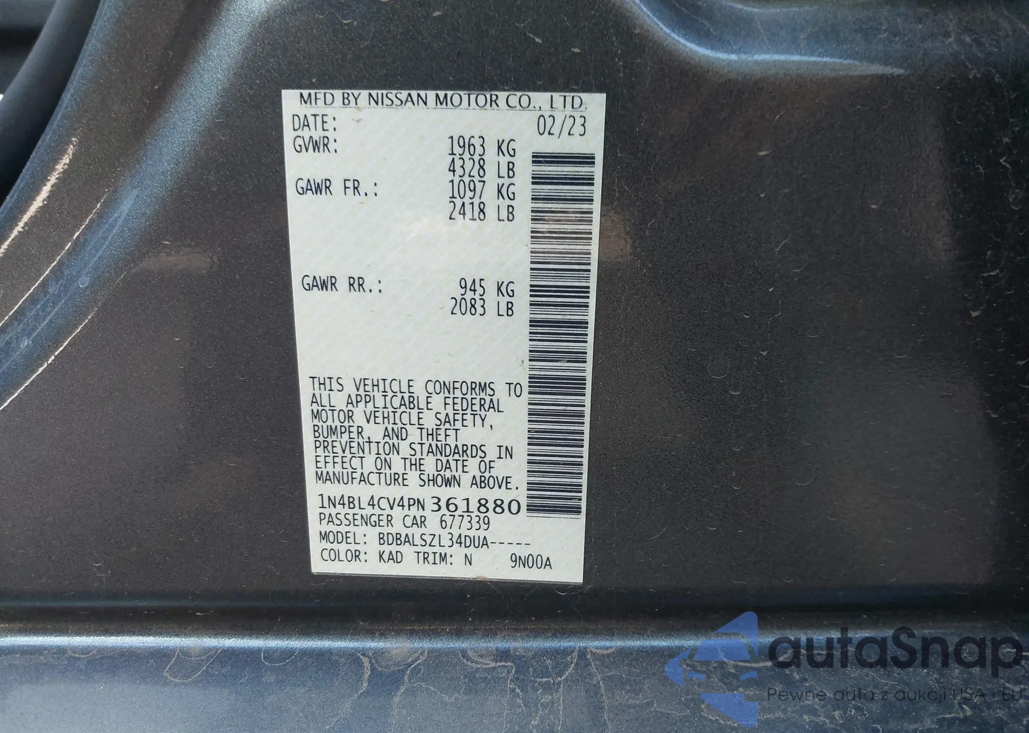 Samochód Nissan Altima 2023 (VIN 1N4BL4CV4PN361880) sprzedaje go niezweryfikowany sprzedawca. Zalecamy raport Carfax i potwierdzenie możliwości rejestracji pojazdu przed zakupem.