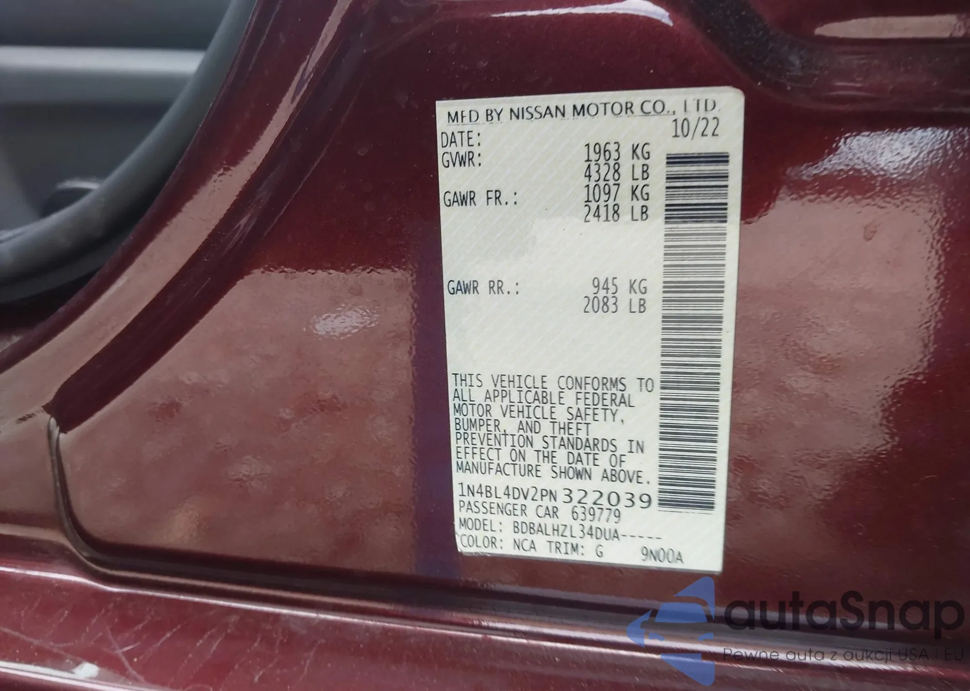 VIN: 1N4BL4DV2PN322039