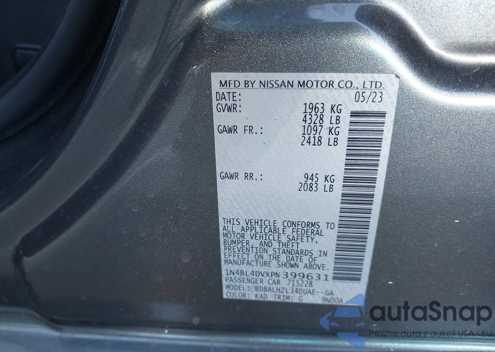 VIN: 1N4BL4DVXPN399631