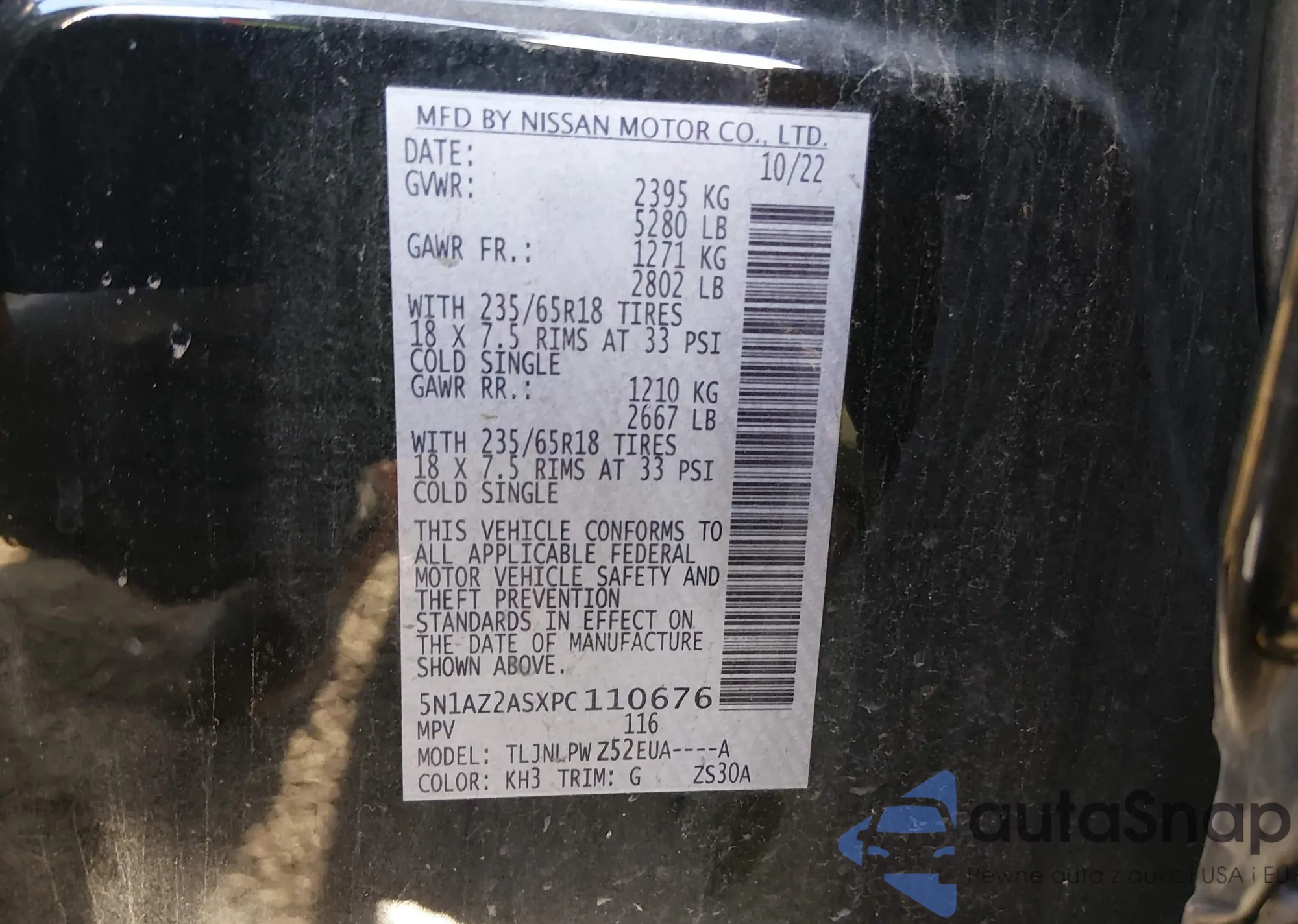 Samochód Nissan Murano 2023 (VIN 5N1AZ2ASXPC110676) nie był wcześniej licytowany. Dokumenty są czyste, przebieg odpowiada lub jest niższy niż średnia rynku. Sprzedaje go firma ubezpieczeniowa – polecamy zakup. Dostawa do portu zajmie ok. 6–8 tygodni.