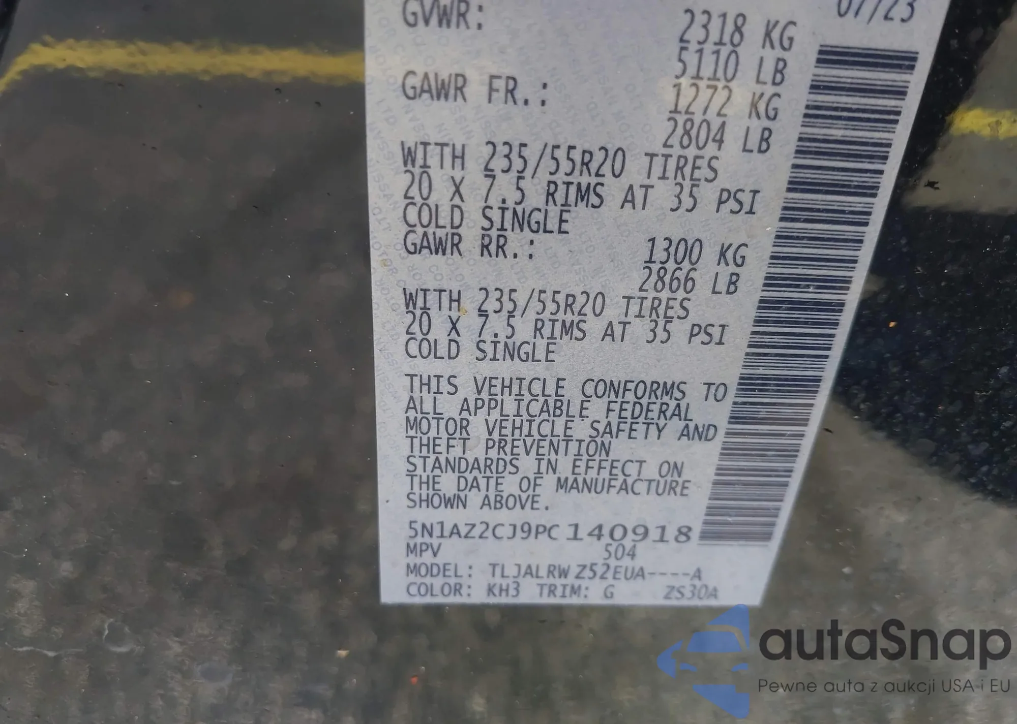 VIN: 5N1AZ2CJ9PC140918