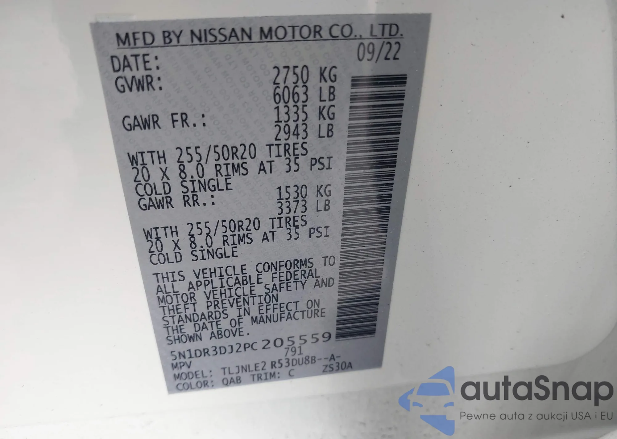 VIN: 5N1DR3DJ2PC205559