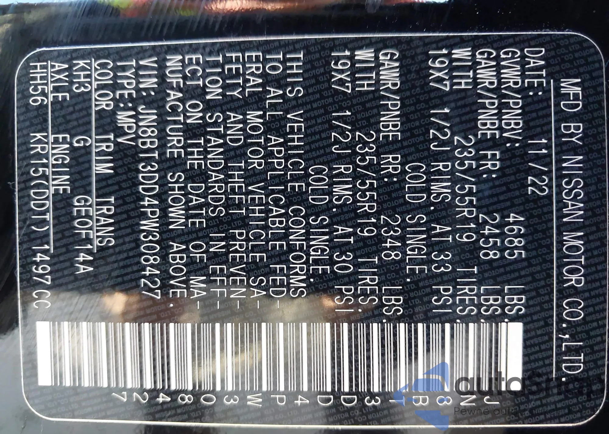 VIN: JN8BT3DD4PW308427