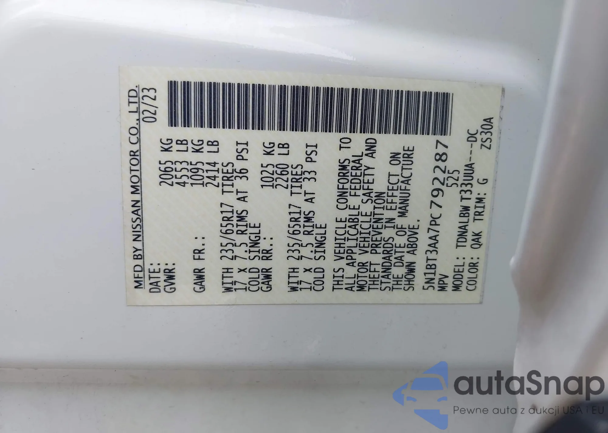 VIN: 5N1BT3AA7PC792287