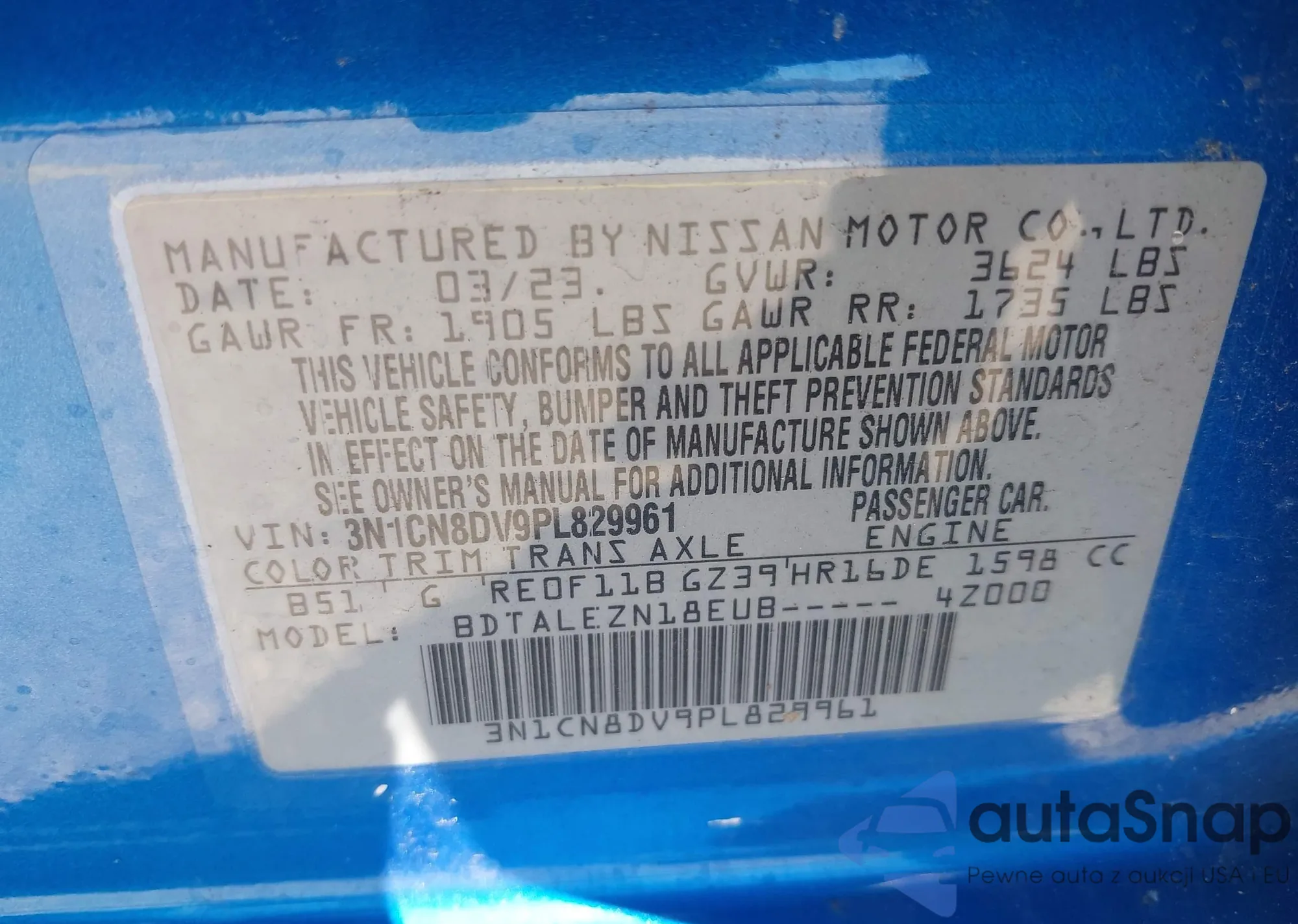 VIN: 3N1CN8DV9PL829961