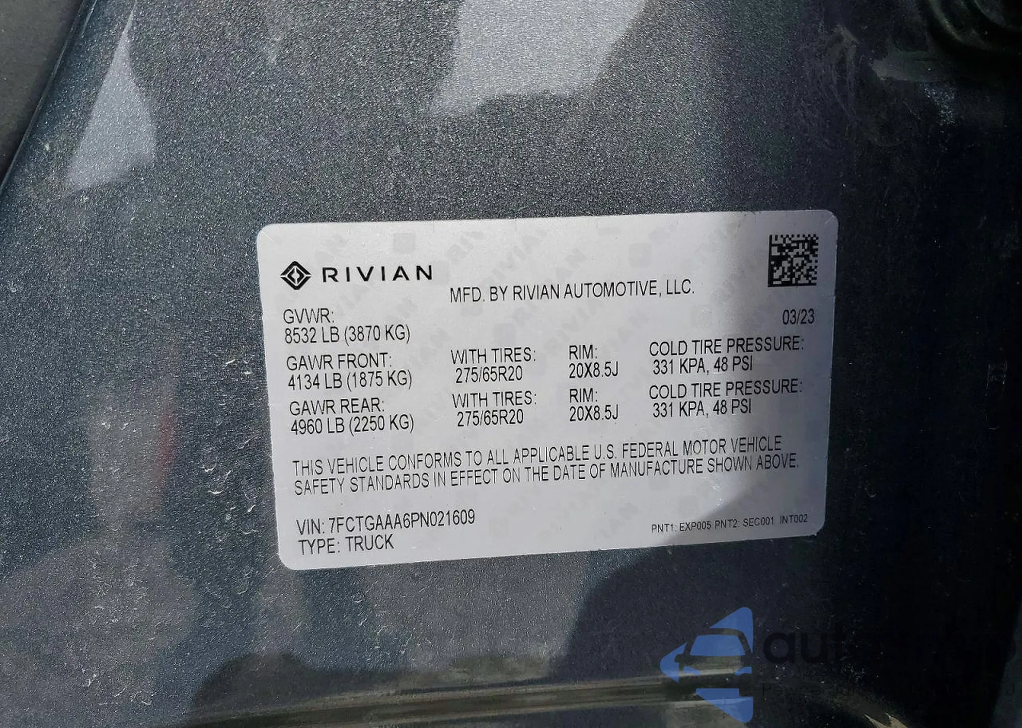 Samochód Rivian R1T 2023 (VIN 7FCTGAAA6PN021609) sprzedaje go niezweryfikowany sprzedawca. Zalecamy raport Carfax i potwierdzenie możliwości rejestracji pojazdu przed zakupem.