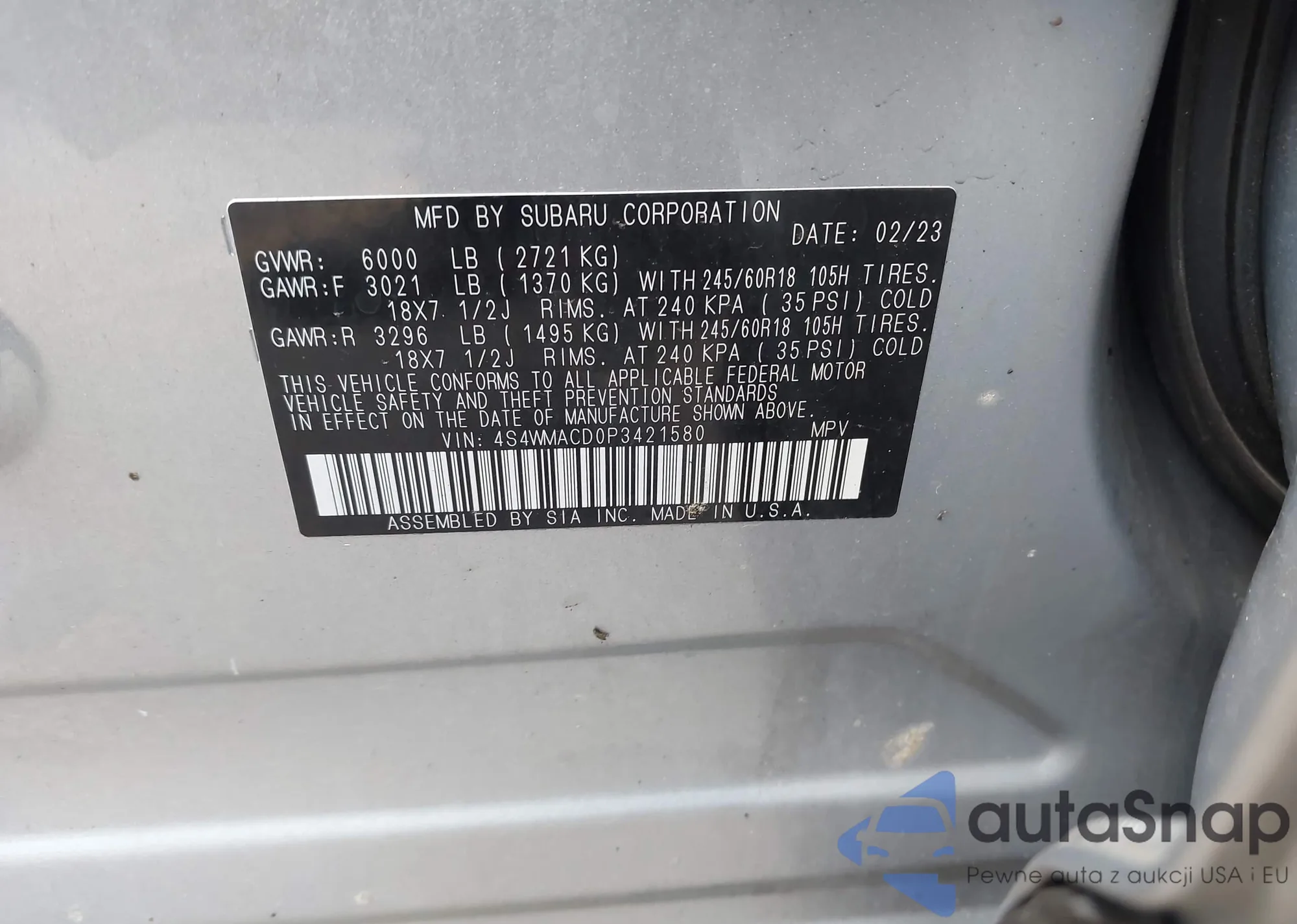 VIN: 4S4WMACD0P3421580