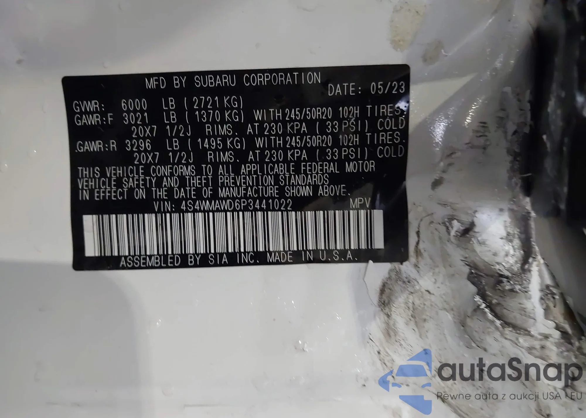• VIN: 4S4WMAWD6P3441022