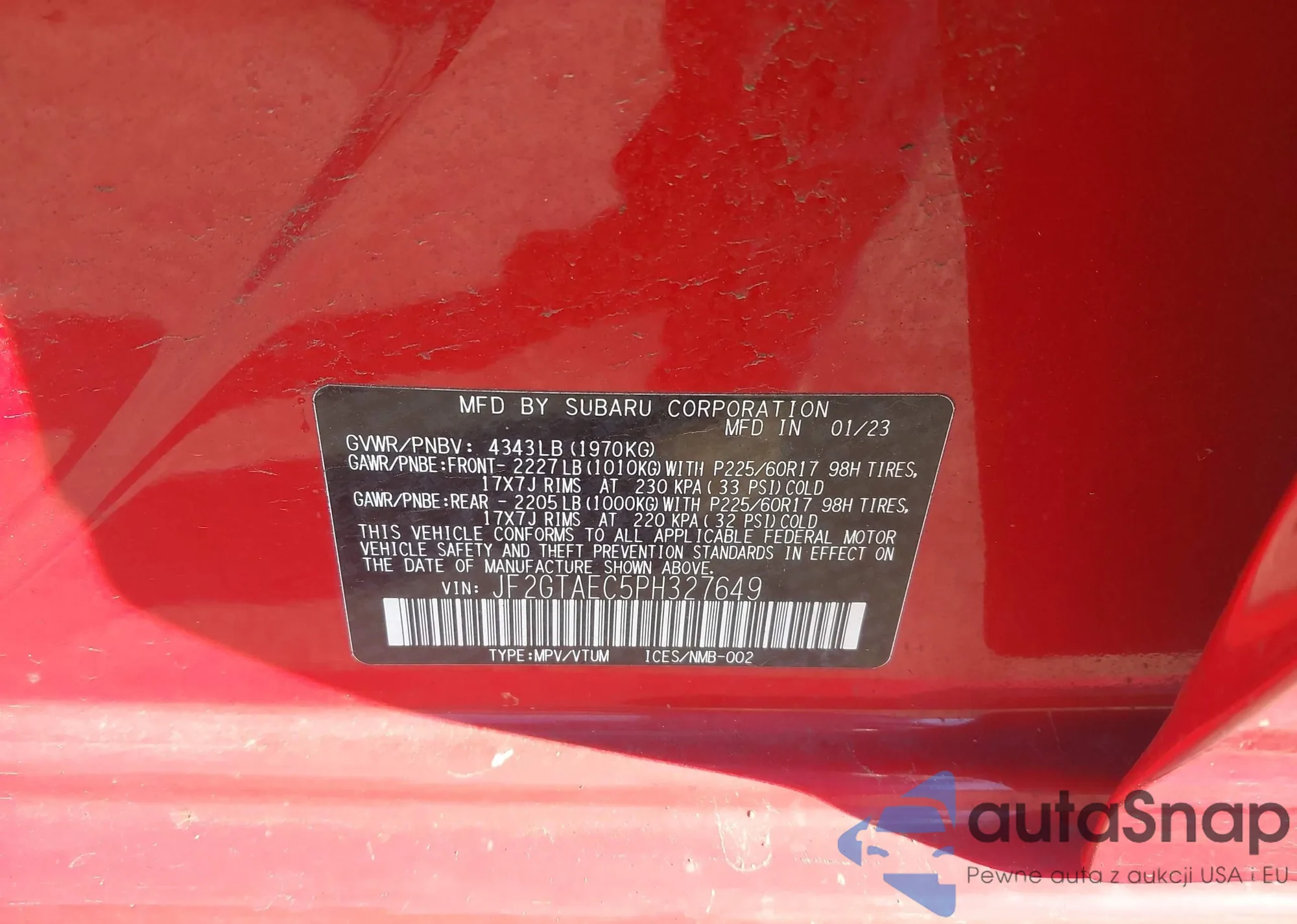 VIN: JF2GTAEC5PH327649