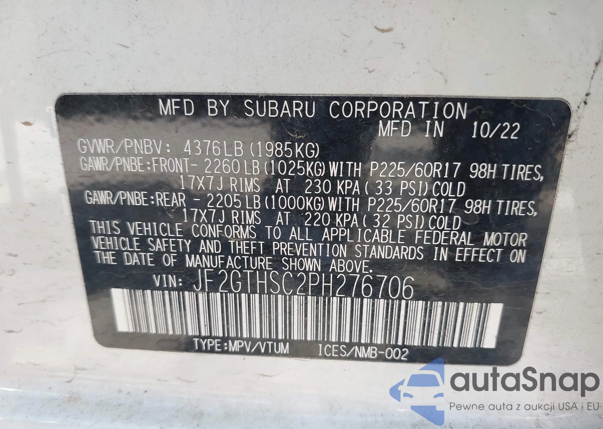 VIN: JF2GTHSC2PH276706