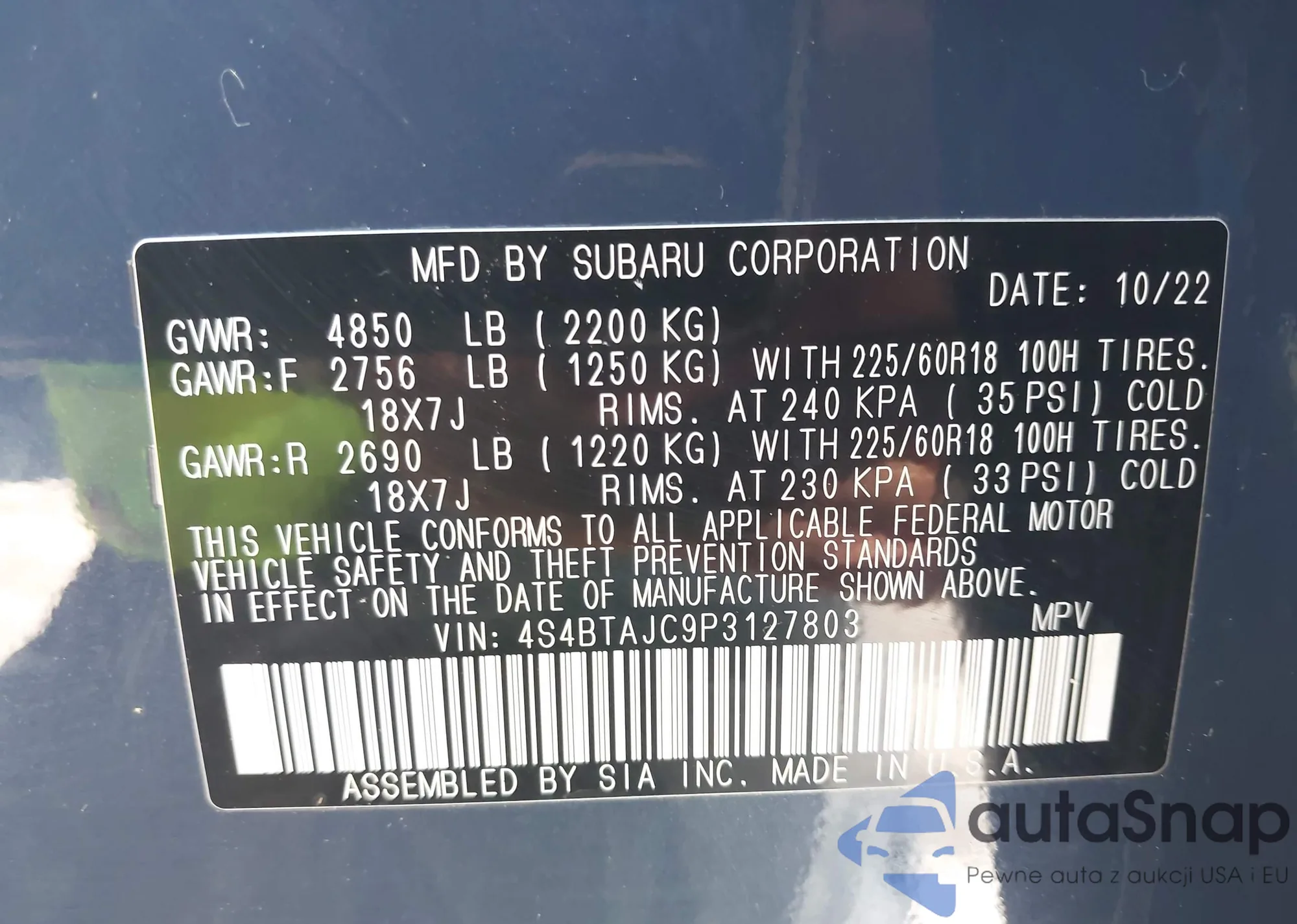 • VIN: 4S4BTAJC9P3127803
