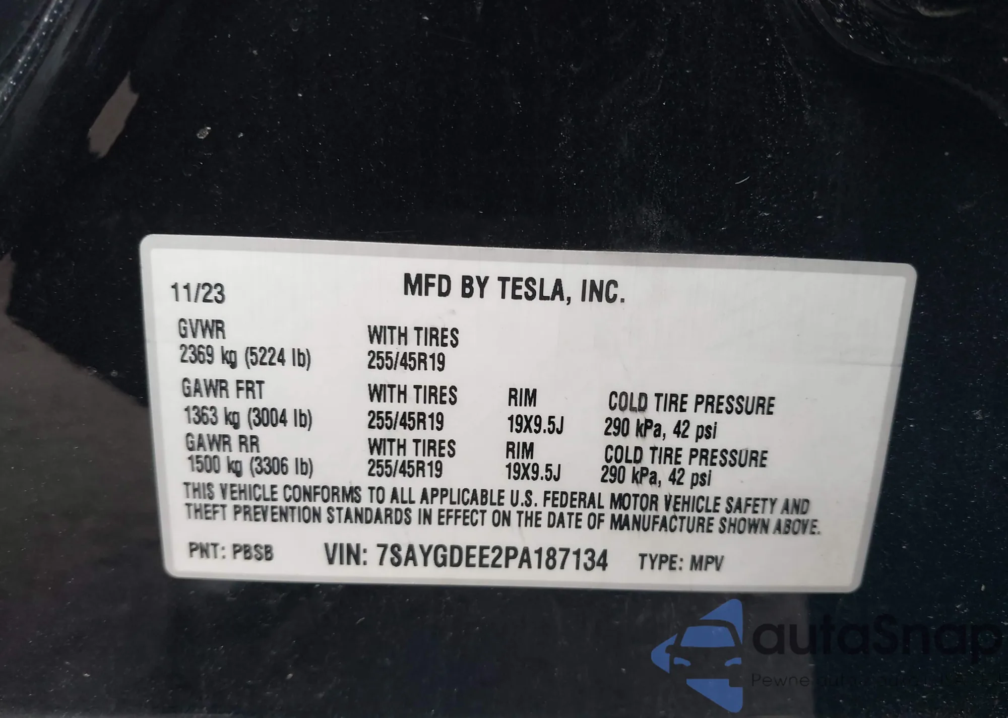 • VIN: 7SAYGDEE2PA187134