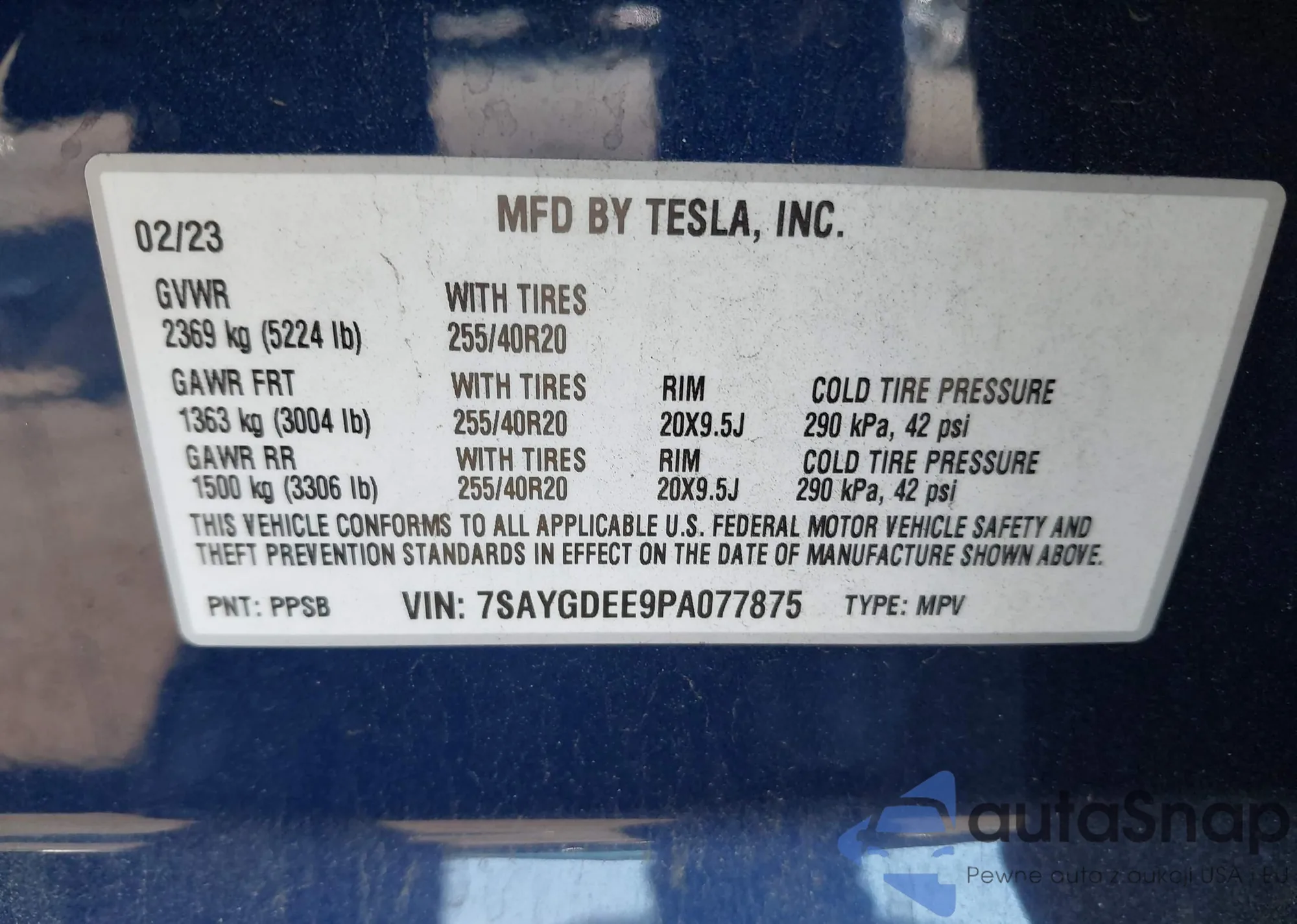 • VIN: 7SAYGDEE9PA077875