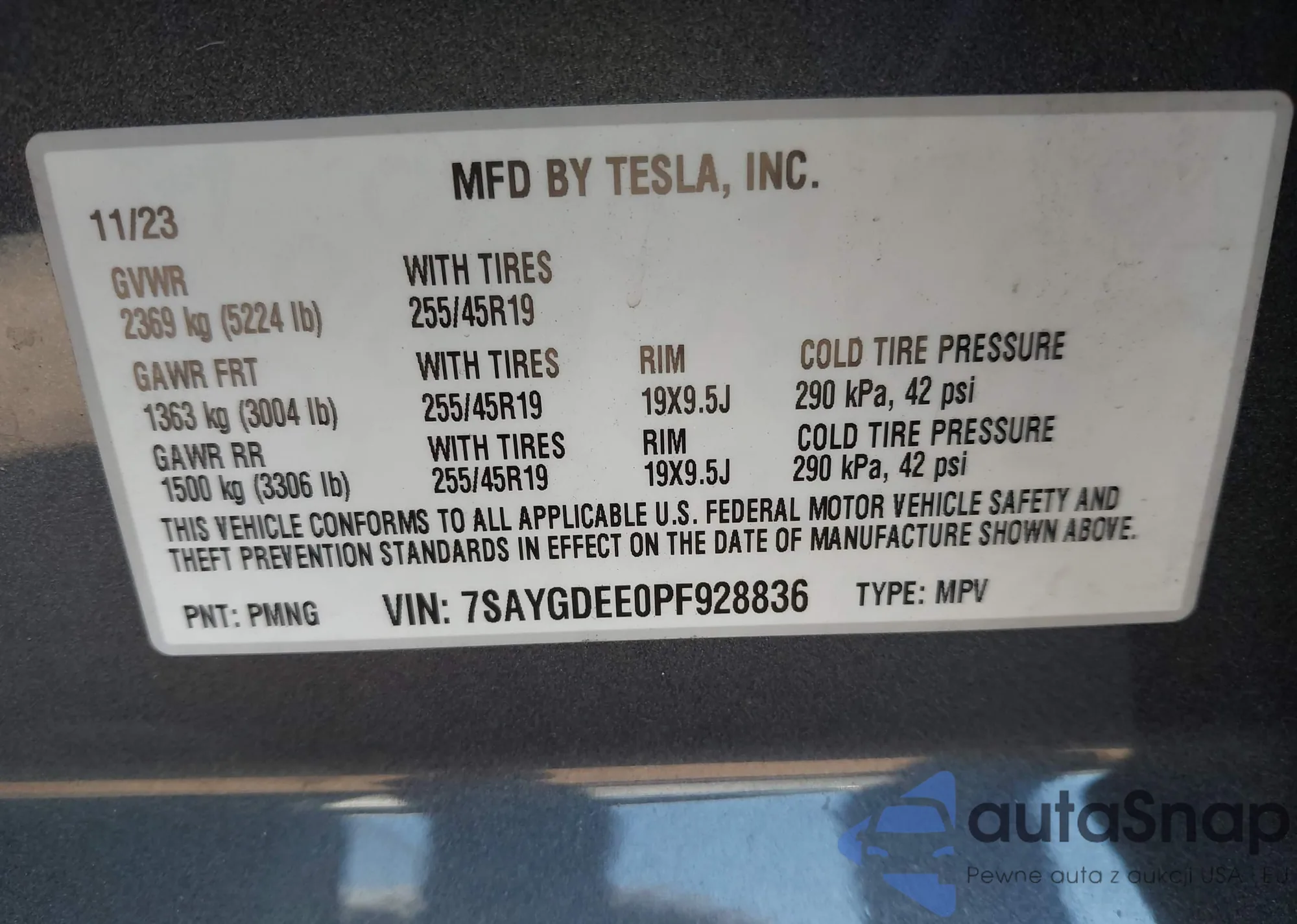 VIN: 7SAYGDEE0PF928836