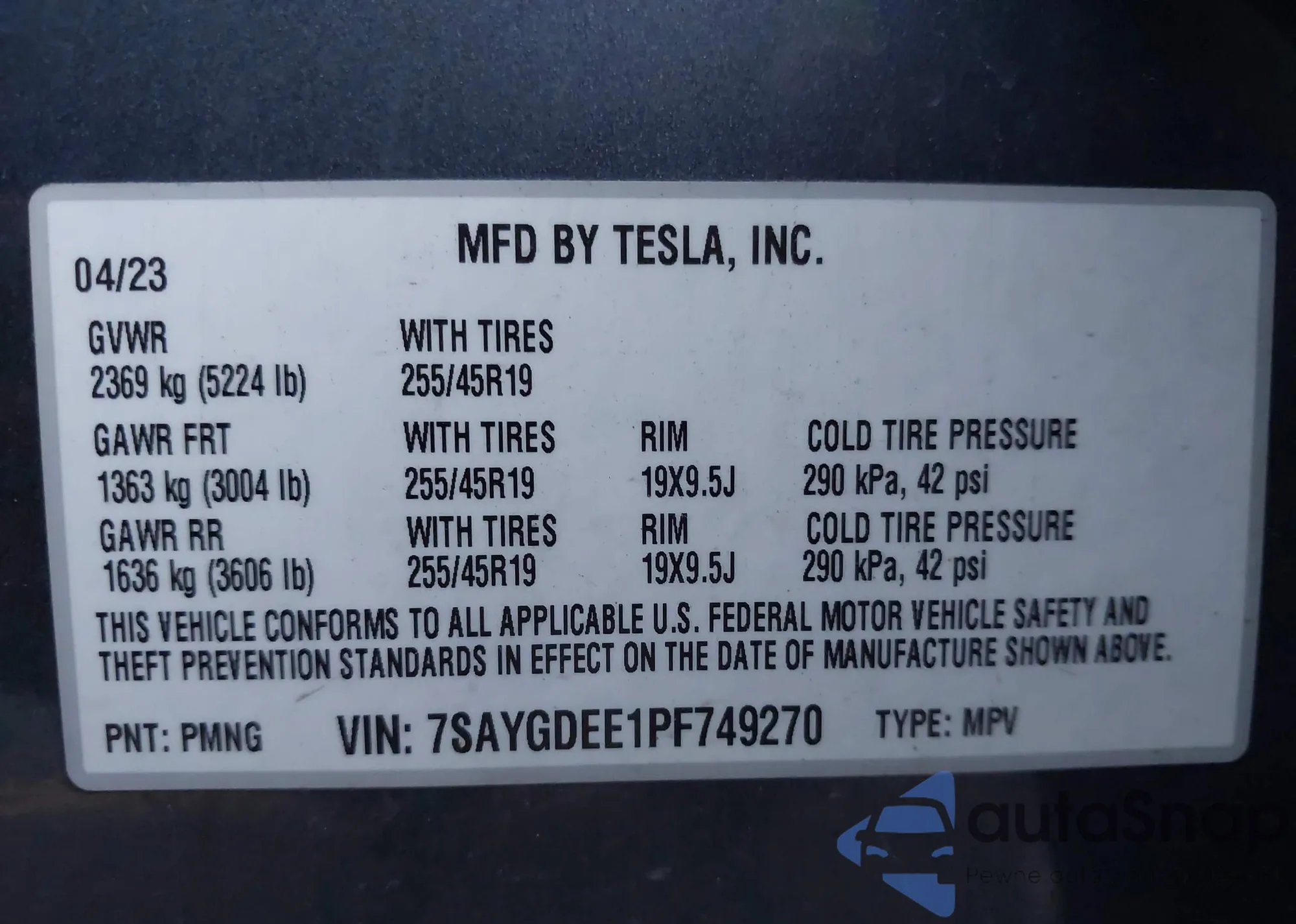 VIN: 7SAYGDEE1PF749270