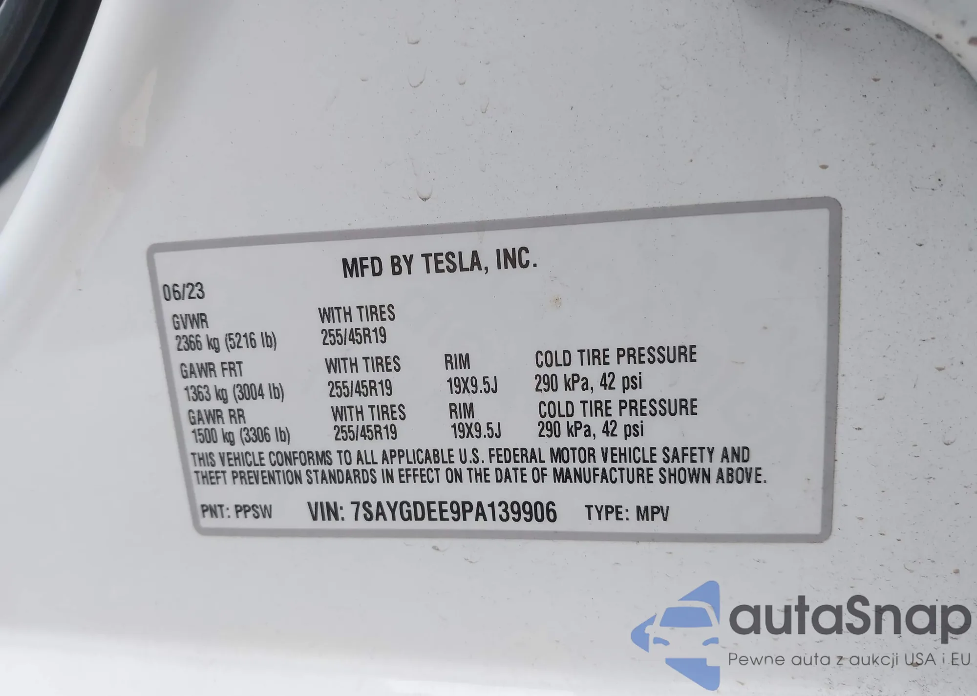 VIN: 7SAYGDEE9PA139906