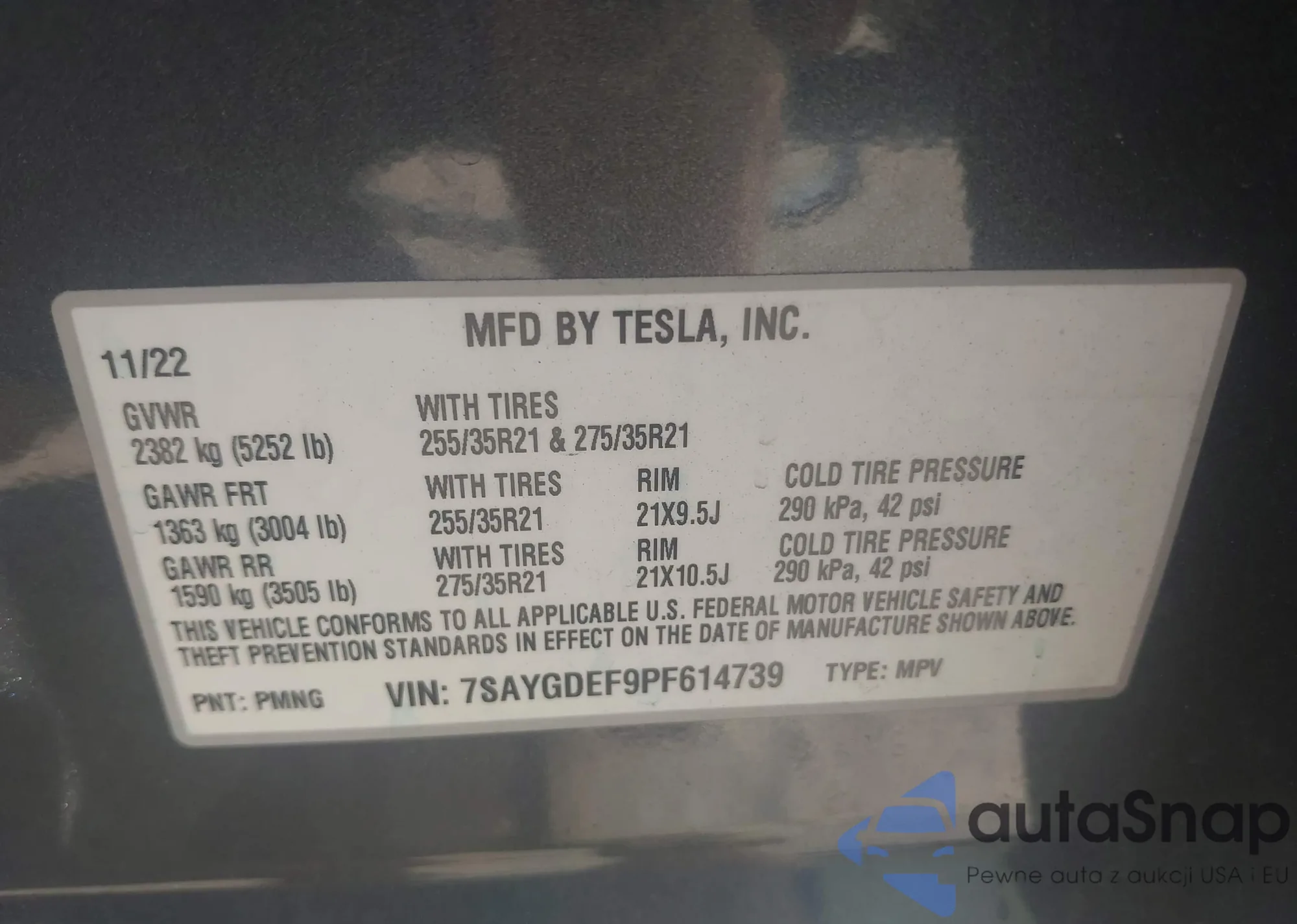 • VIN: 7SAYGDEF9PF614739