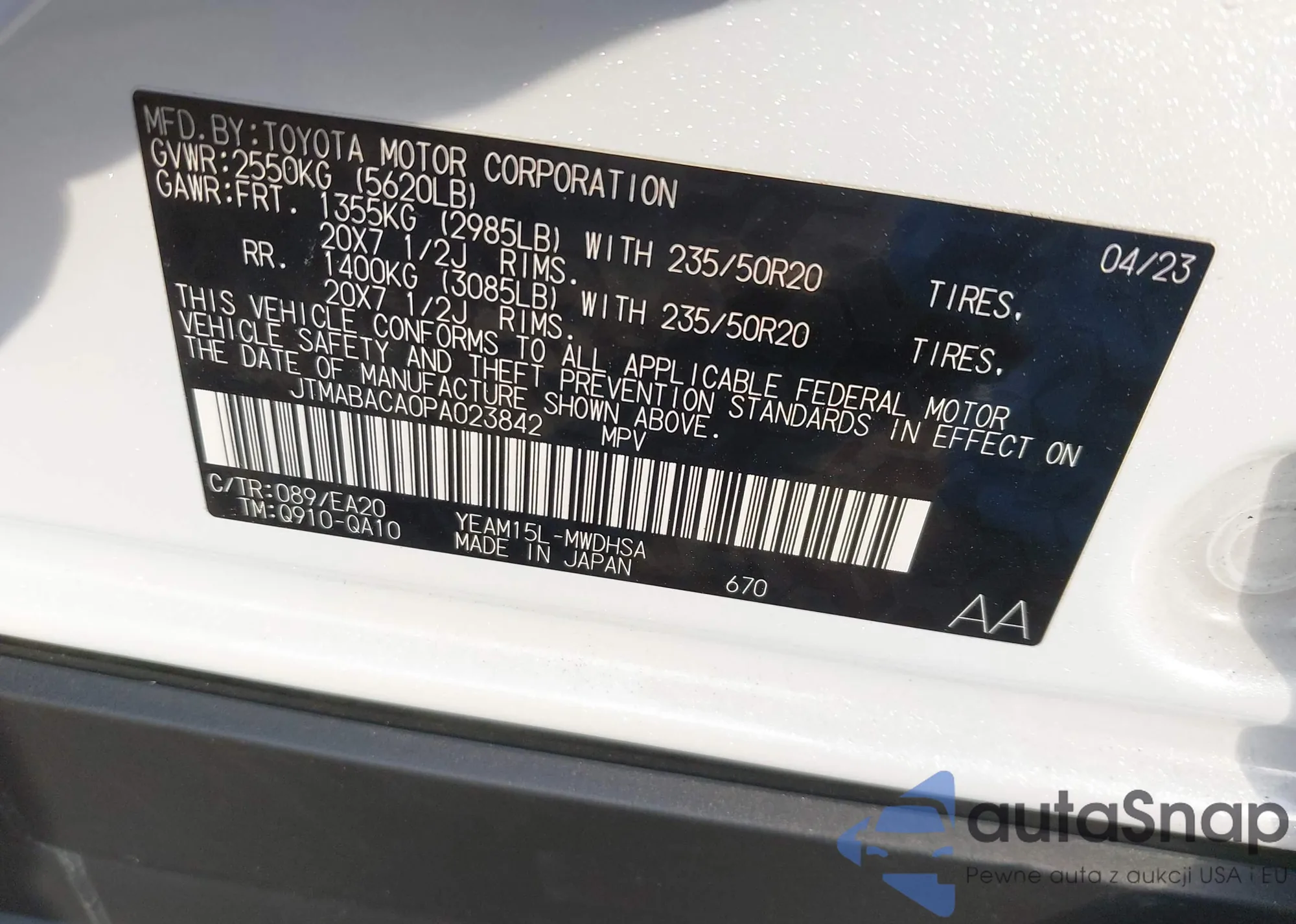 VIN: JTMABACA0PA023842