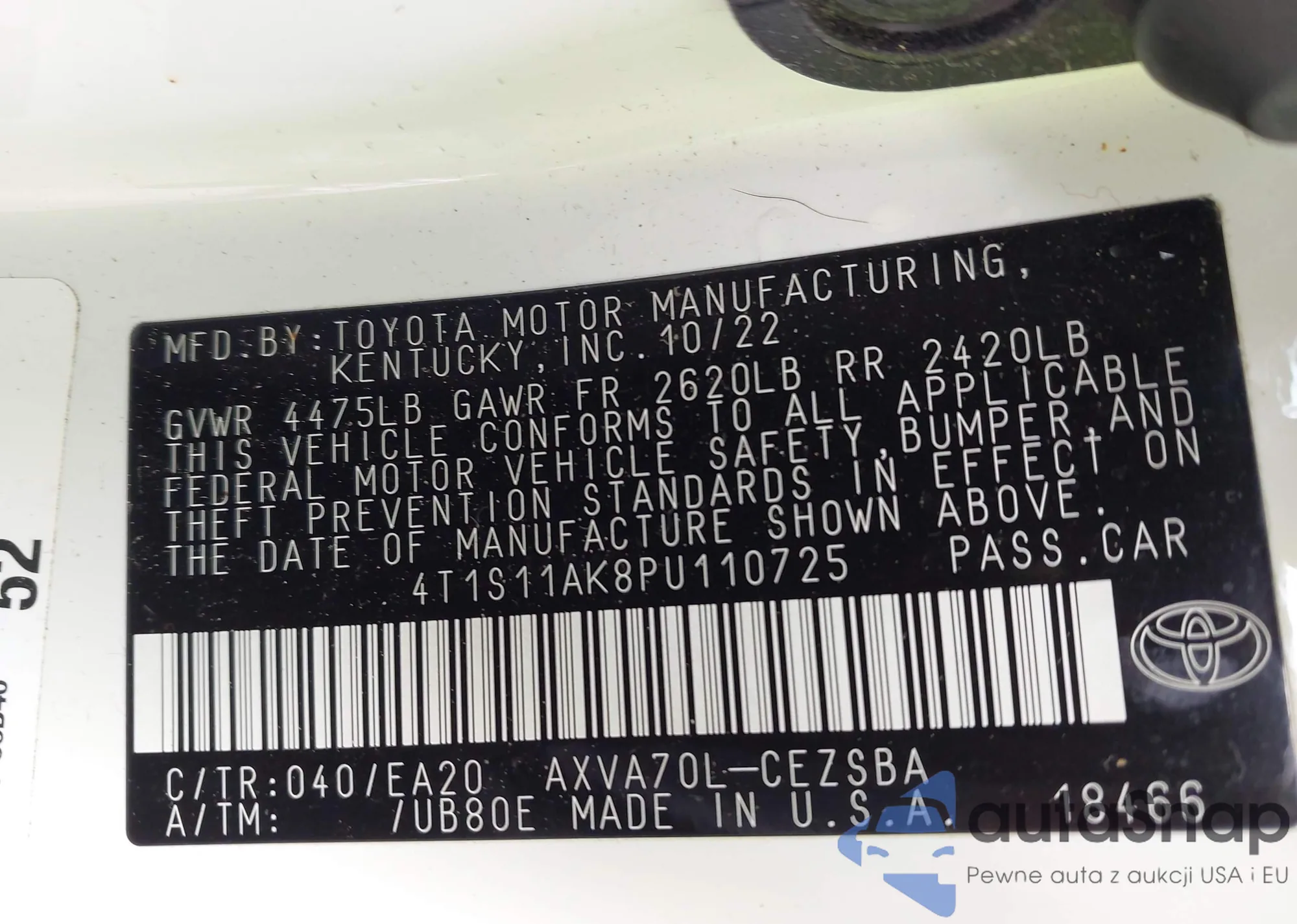 VIN: 4T1S11AK8PU110725
