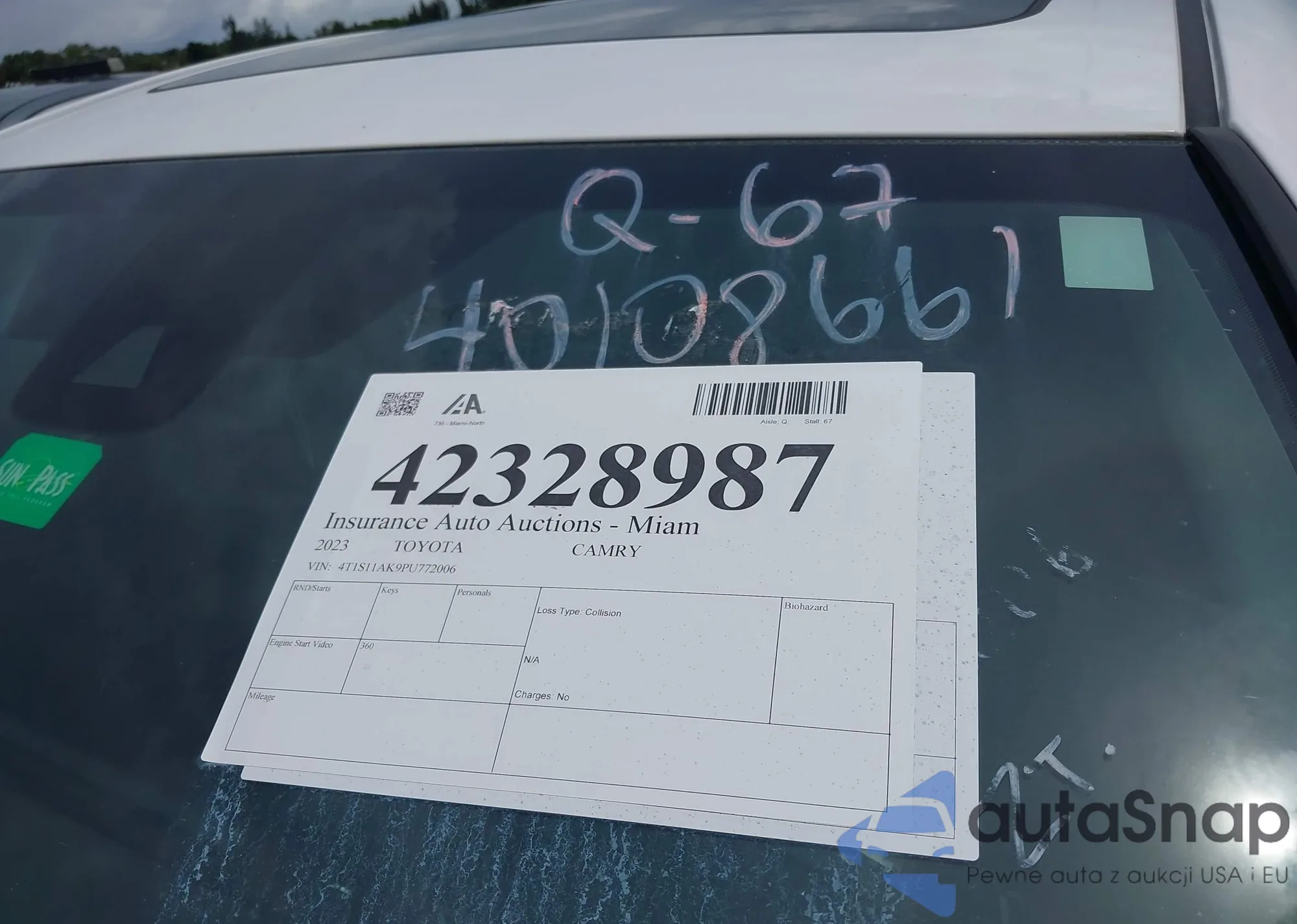 Toyota Camry 2023 – Historia pojazdu (sprzedany na IAAI)