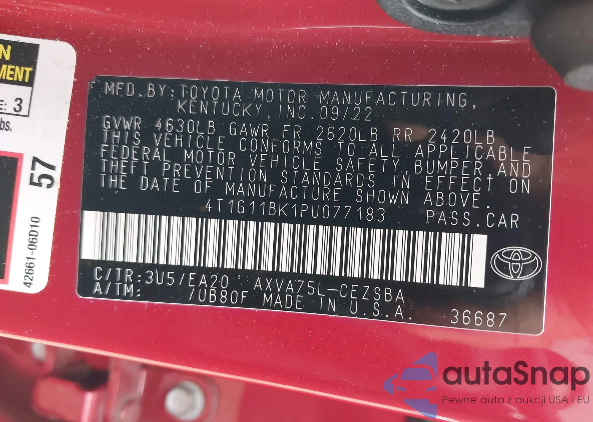 VIN: 4T1G11BK1PU077183