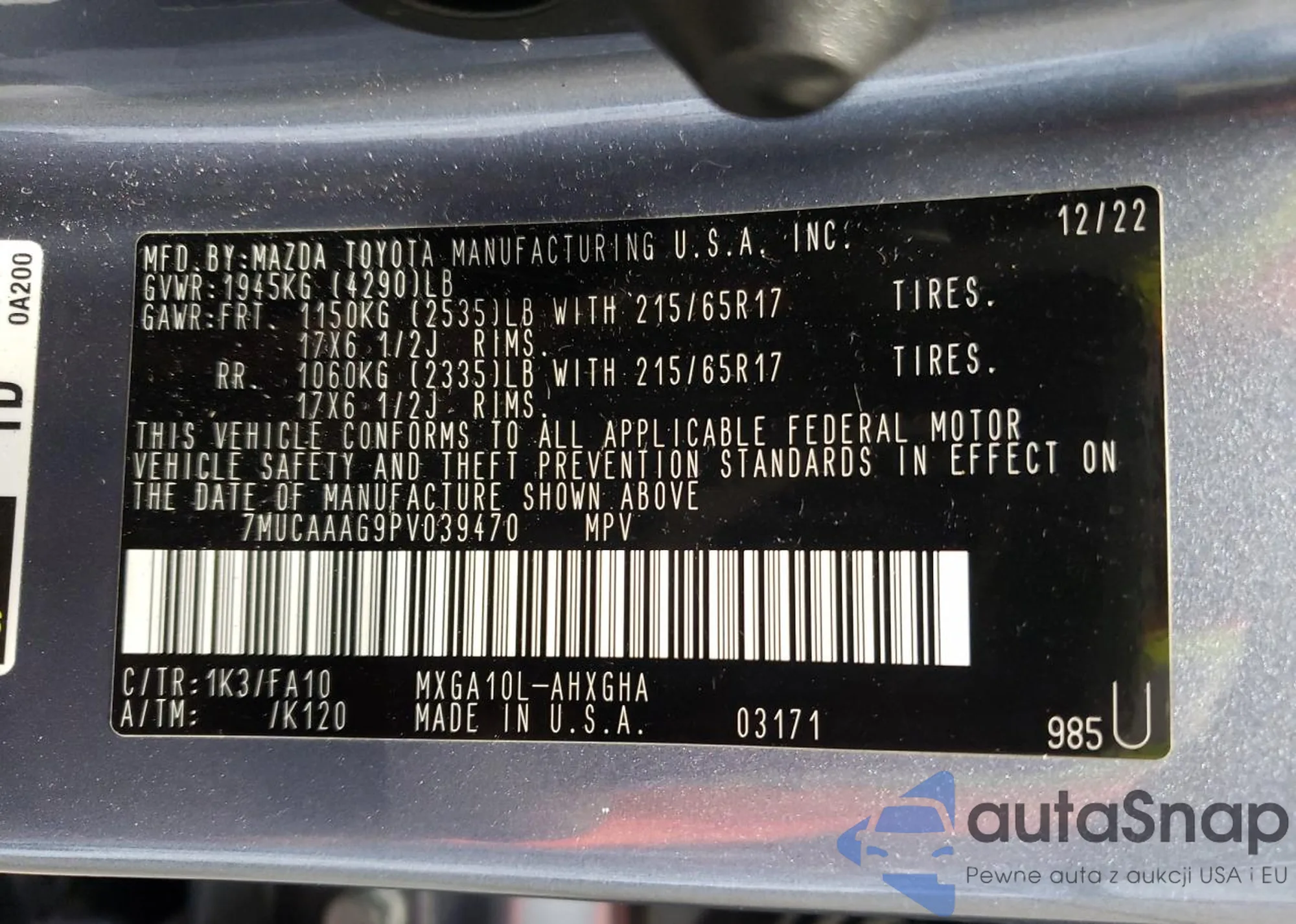 Samochód Toyota Corolla Cross 2023 (VIN 7MUCAAAG9PV039470) sprzedaje go niezweryfikowany sprzedawca. Zalecamy raport Carfax i potwierdzenie możliwości rejestracji pojazdu przed zakupem.