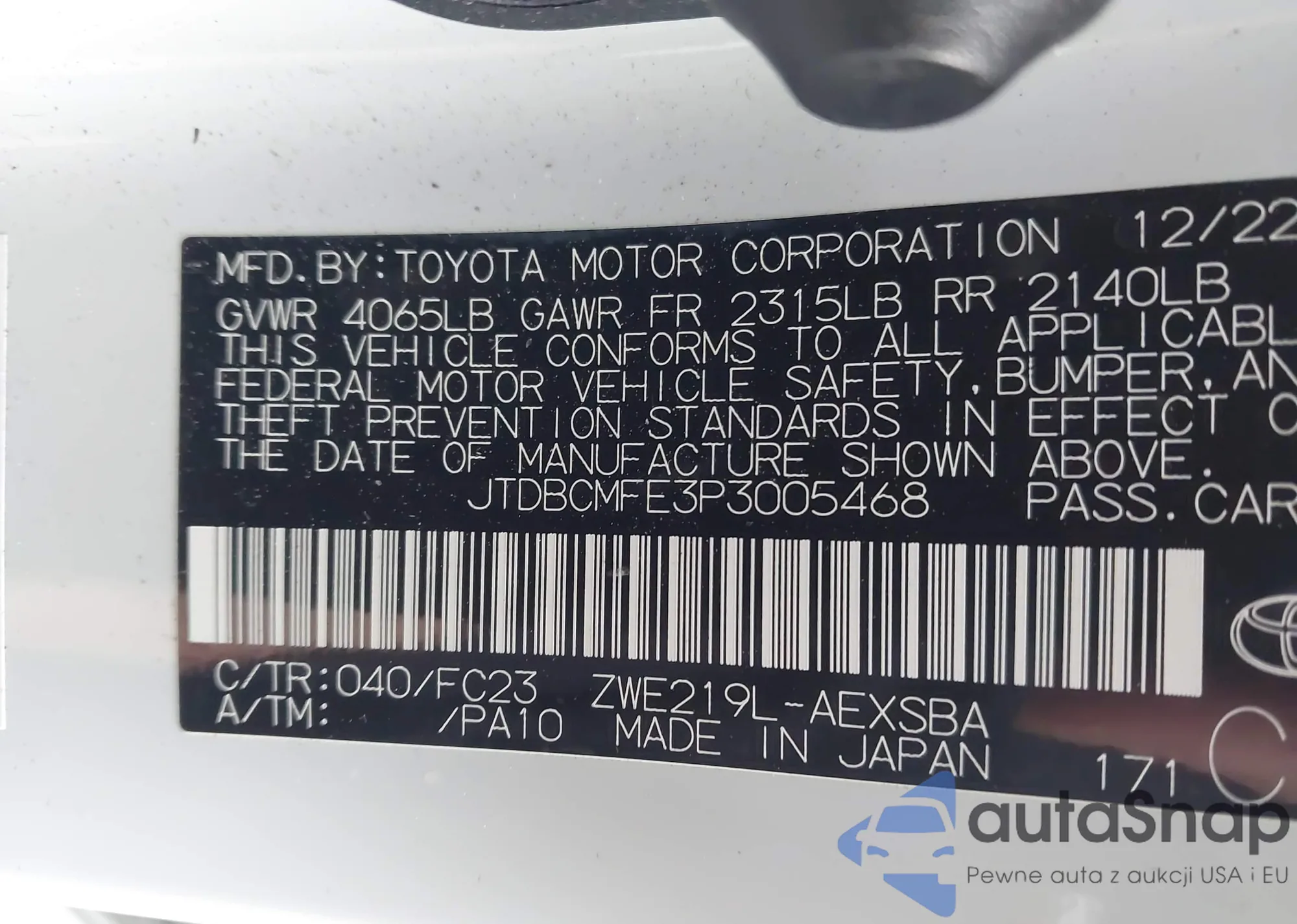 VIN: JTDBCMFE3P3005468