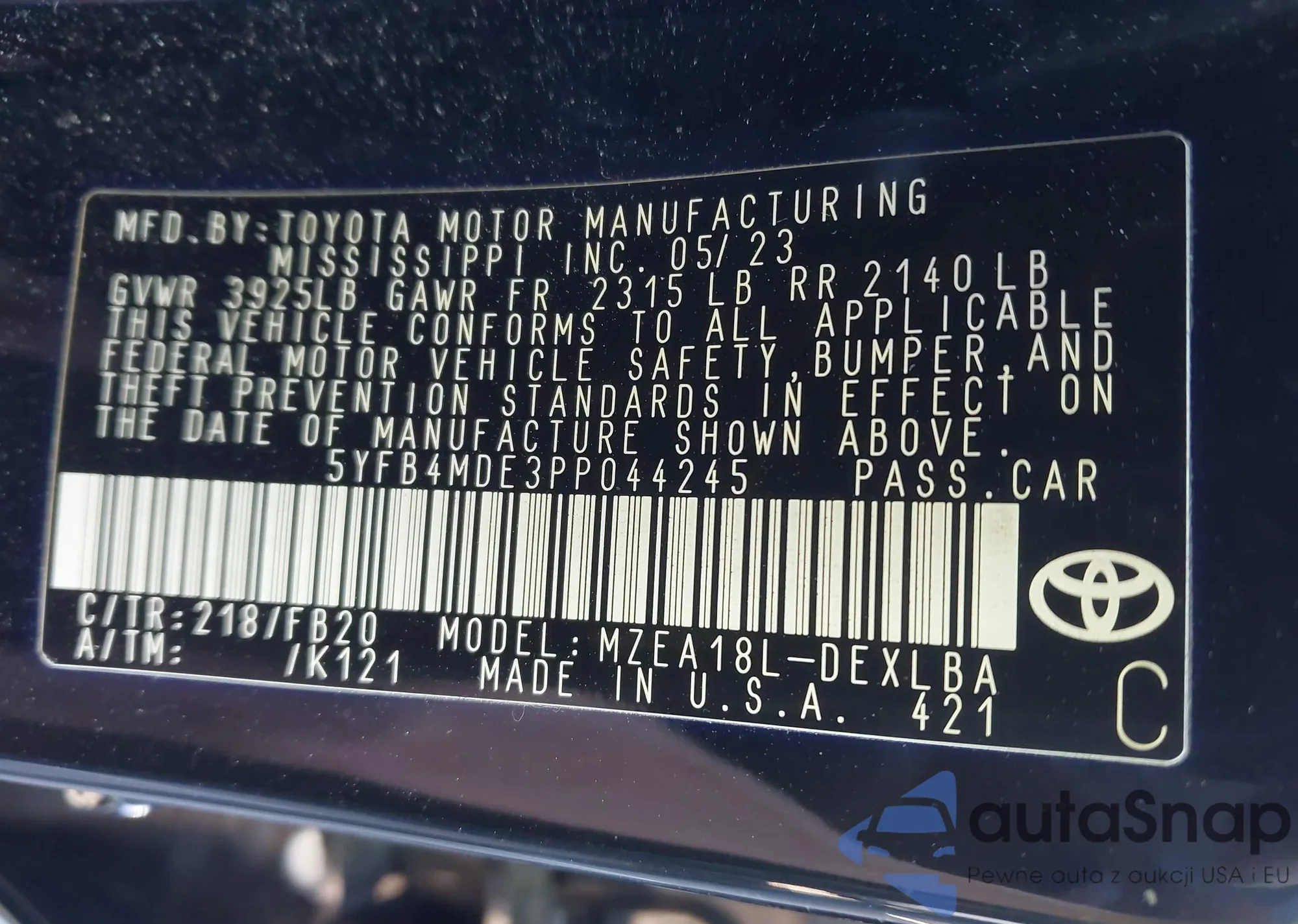 VIN: 5YFB4MDE3PP044245