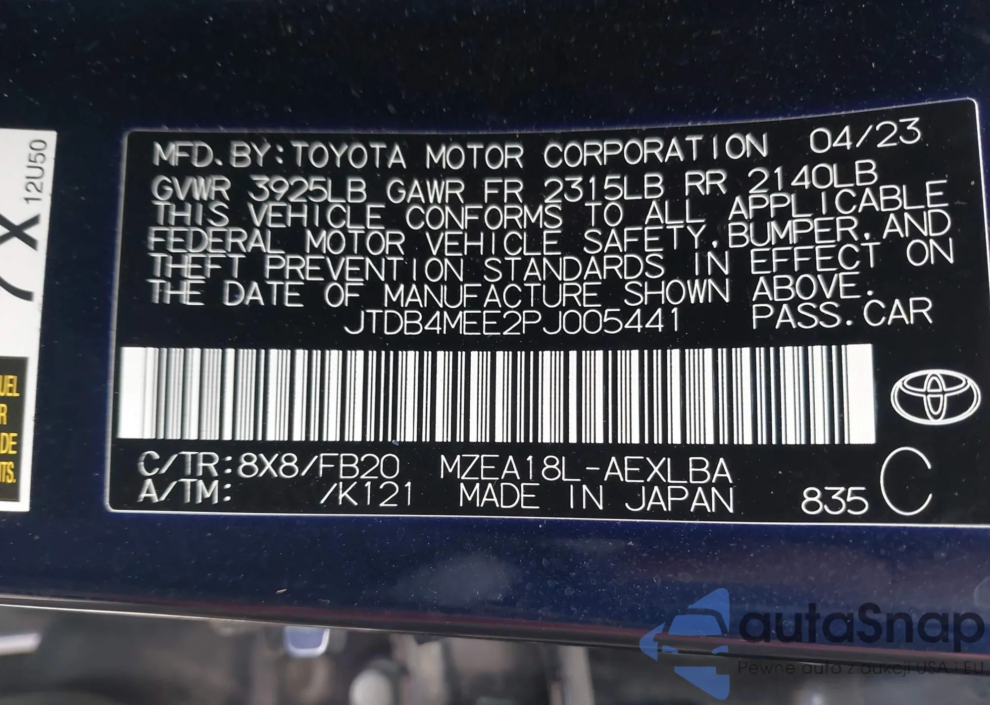 VIN: JTDB4MEE2PJ005441
