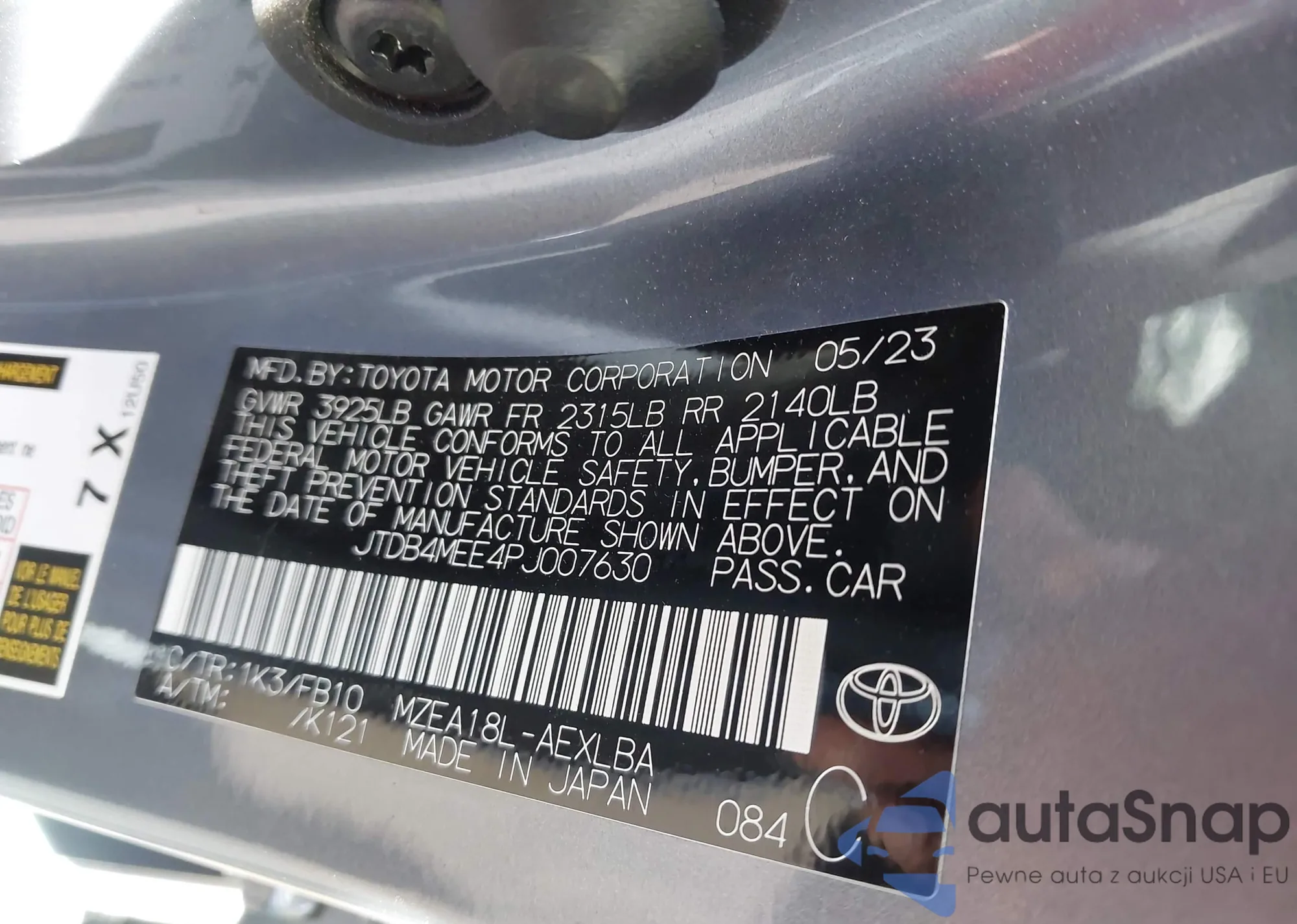 • VIN: JTDB4MEE4PJ007630