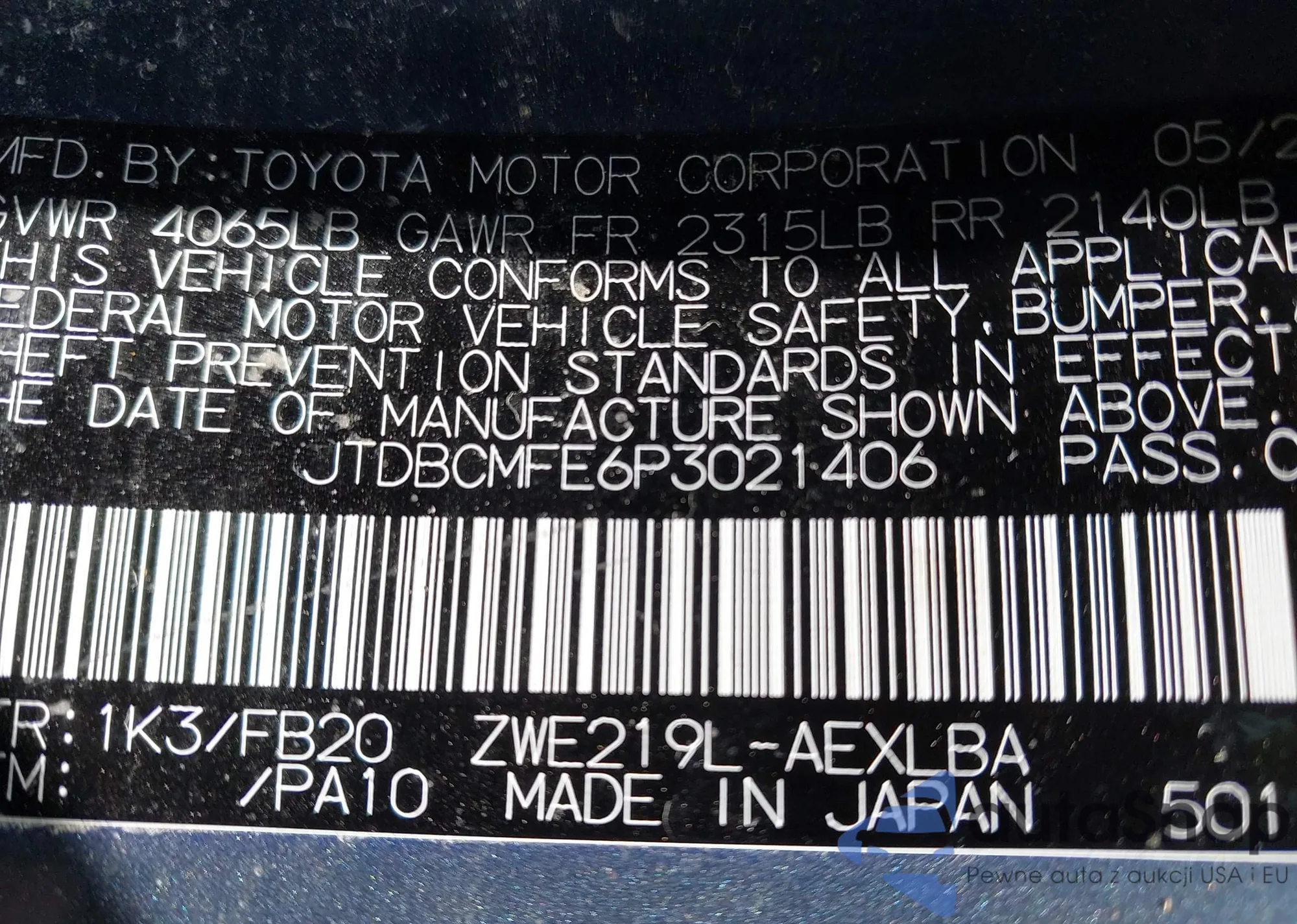 VIN: JTDBCMFE6P3021406