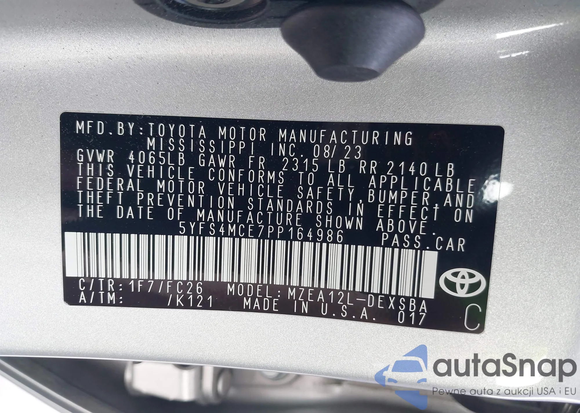 • VIN: 5YFS4MCE7PP164986