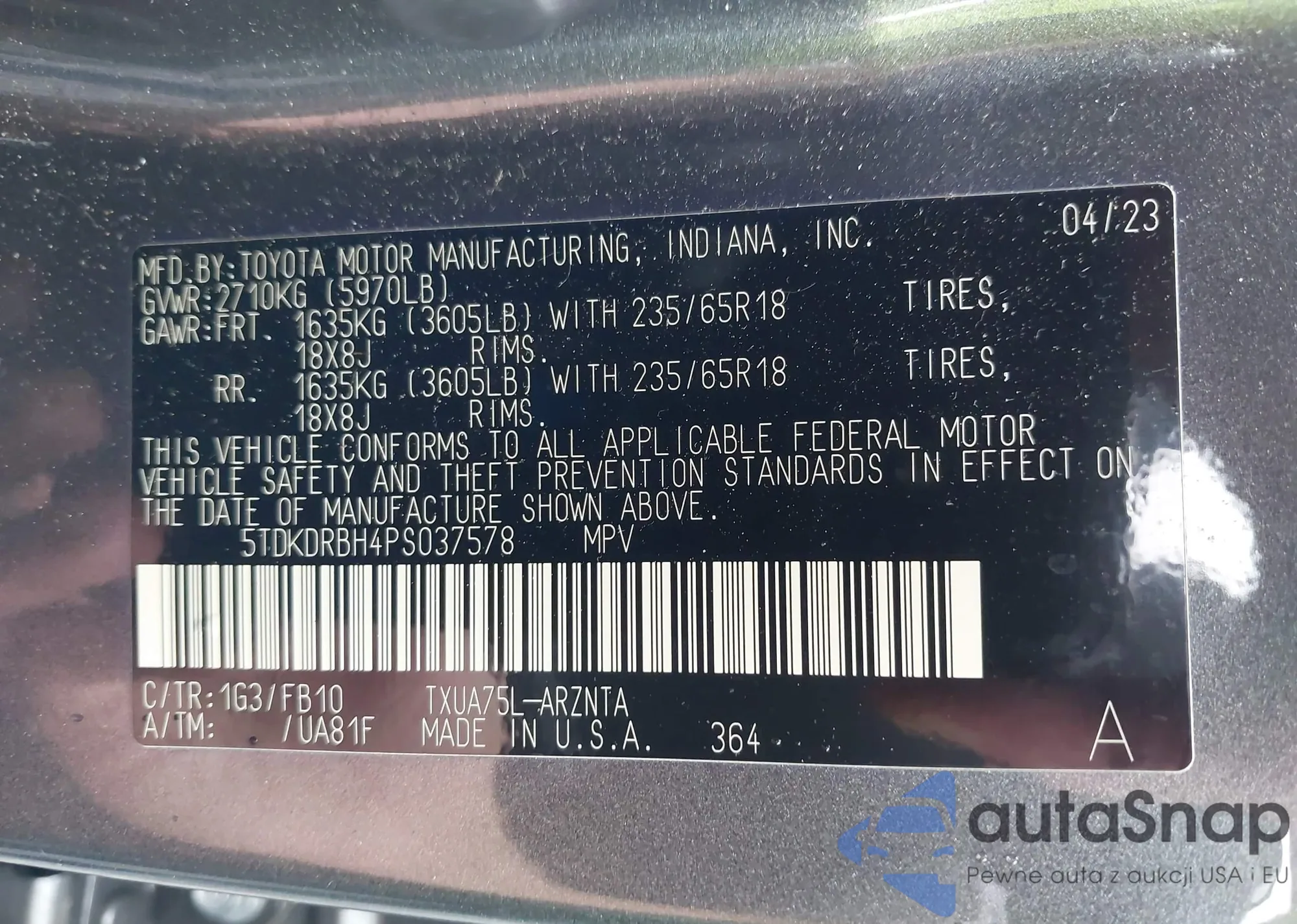 VIN: 5TDKDRBH4PS037578