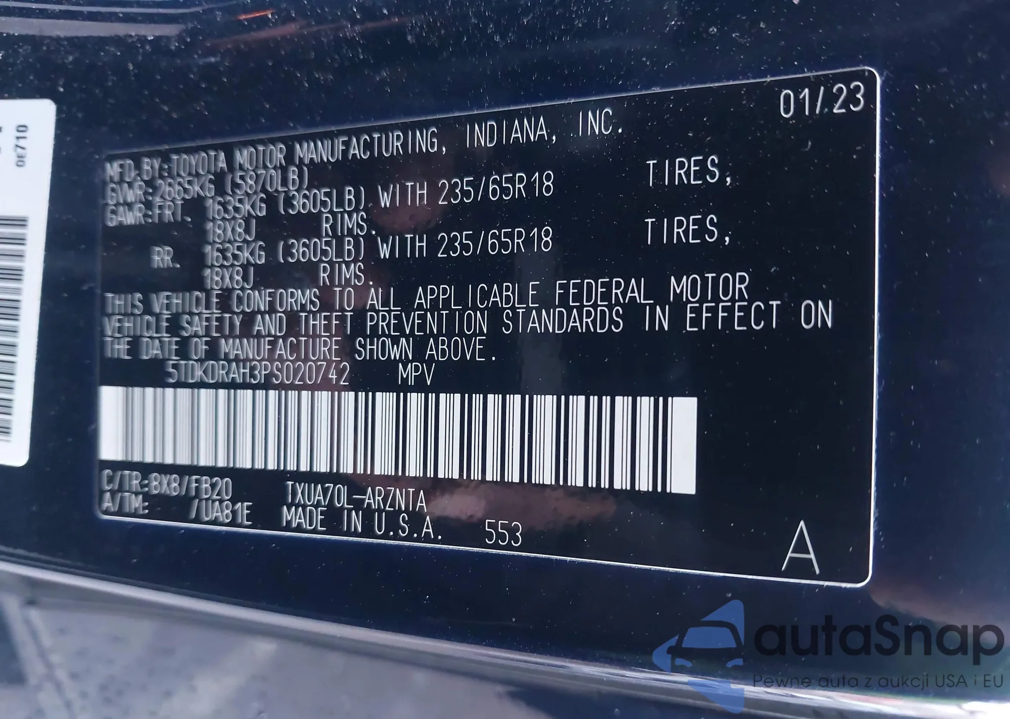 VIN: 5TDKDRAH3PS020742